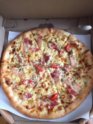 Карбонара 650-700 г (тесто, сливки 33%, сыр "Моцарелла", бекон, яйцо, помидорки Черри, сыр "Джугас", масло оливковое, специи) ![]() - 31 см: 11 руб. вместо 13,99 руб. |