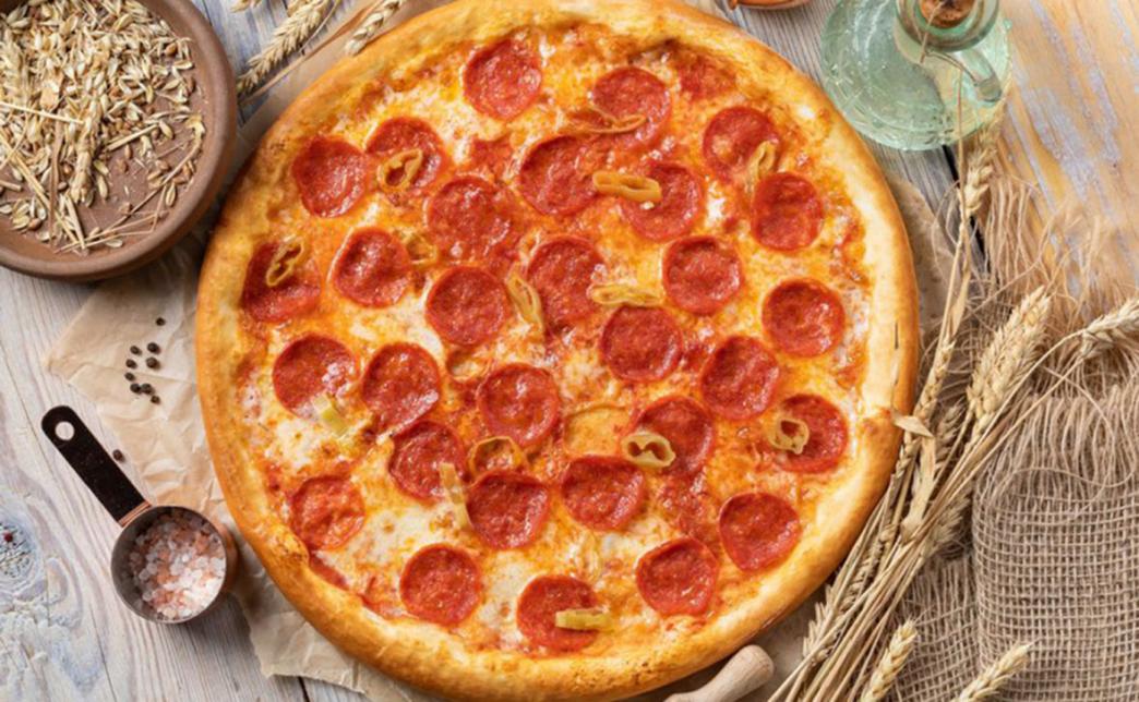 - сыр "Моцарелла" (50 г): 2 р. - помидоры (50 г): 2 р. - перец сладкий (50 г): 2 р. - шампиньоны (50 г): 2 р. - лук карамельный (50 г): 1 р. - лук маринованный (50 г): 1 р. - ветчина (50 г): 2 р. - бекон (50 г): 2 р. - пепперони (50 г): 2 р. |