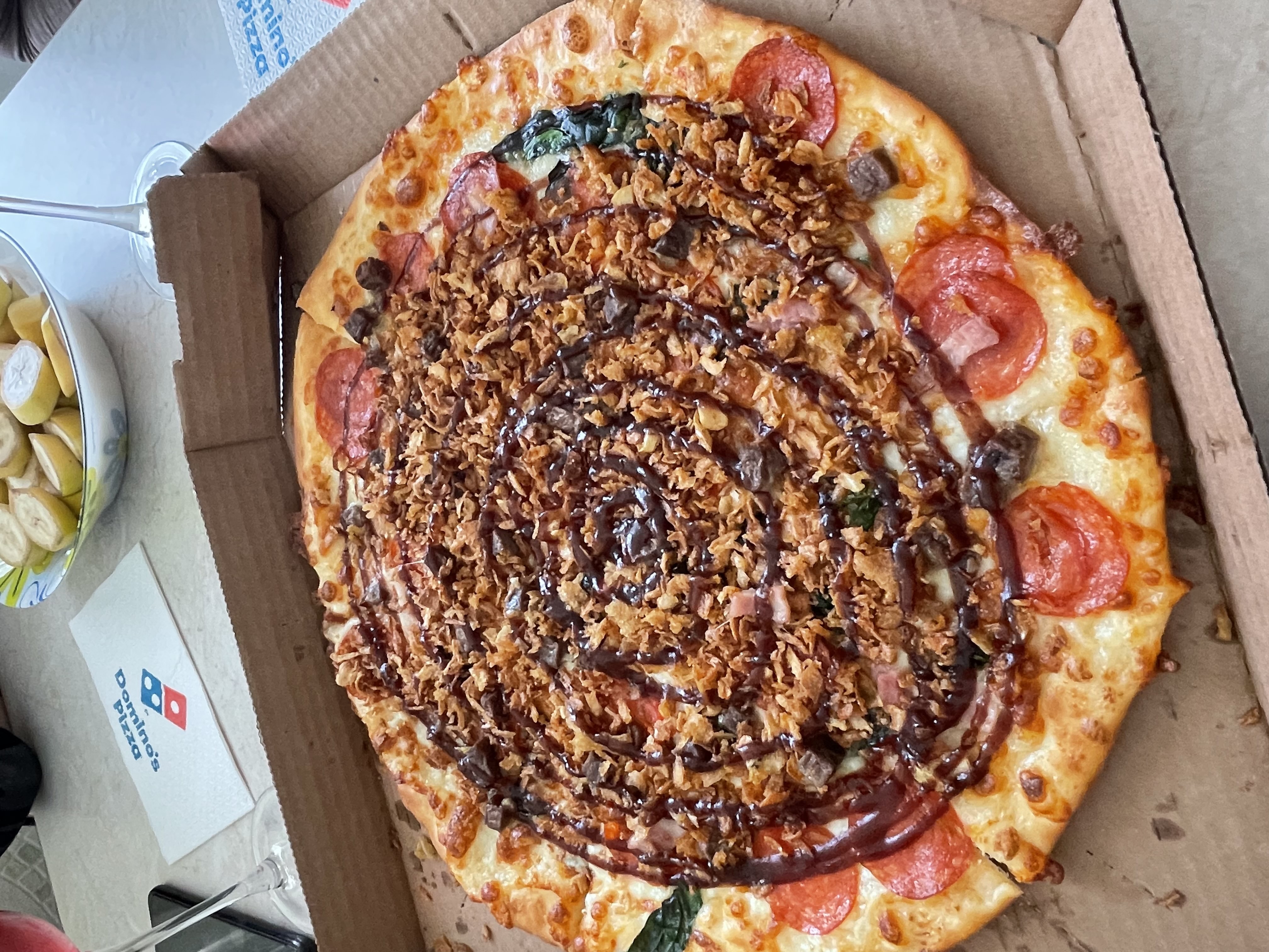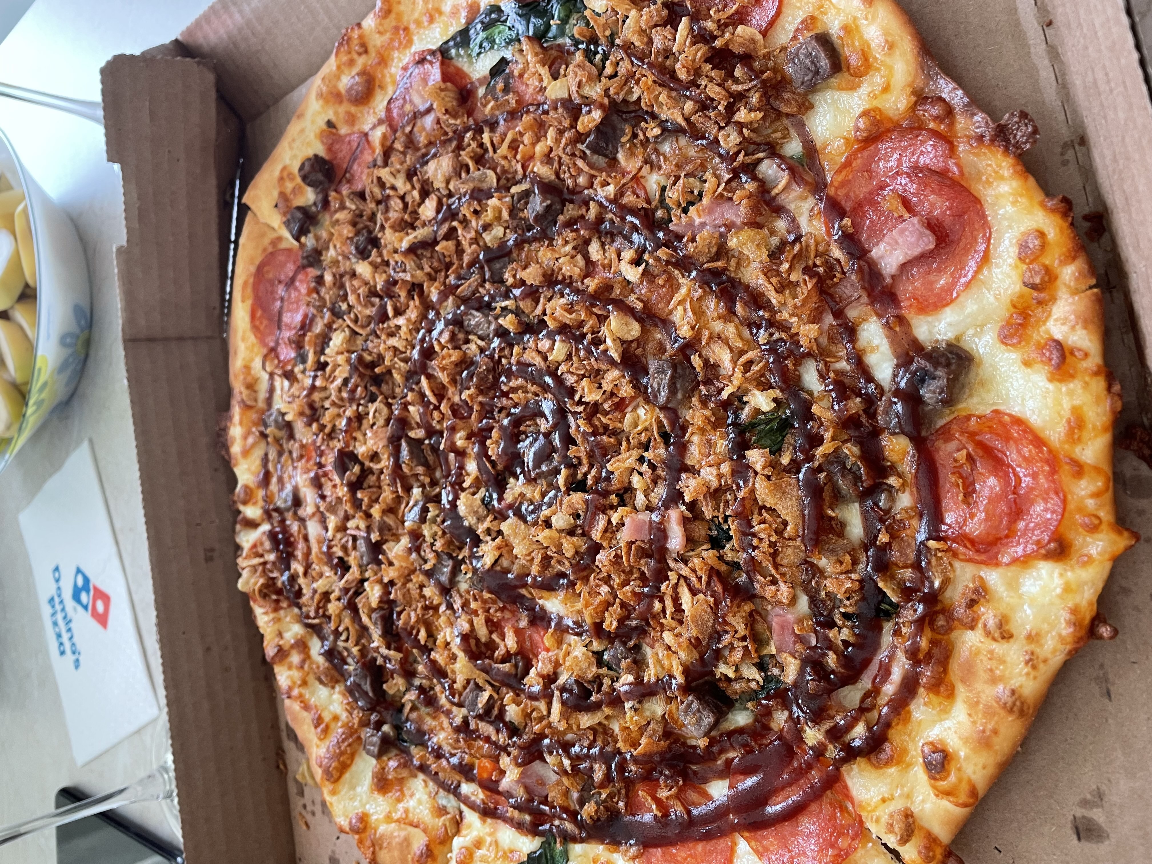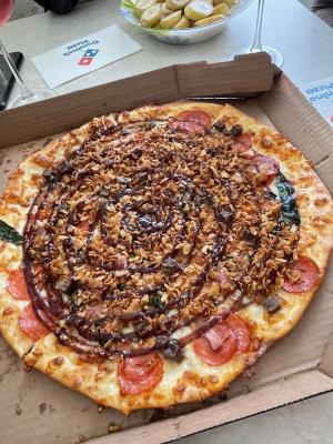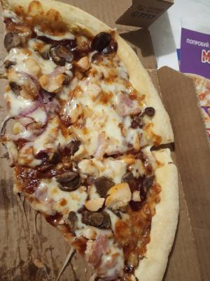 Всегда была вкусная пицца, для детей заказывали гавайскую или пепперони/чеддерони, но, судя по всему, изменили рецептуру у гавайской. Вместо томатной пасты - сырный соус. К сожалению, данное сочетание разачаровало. Очень жаль.