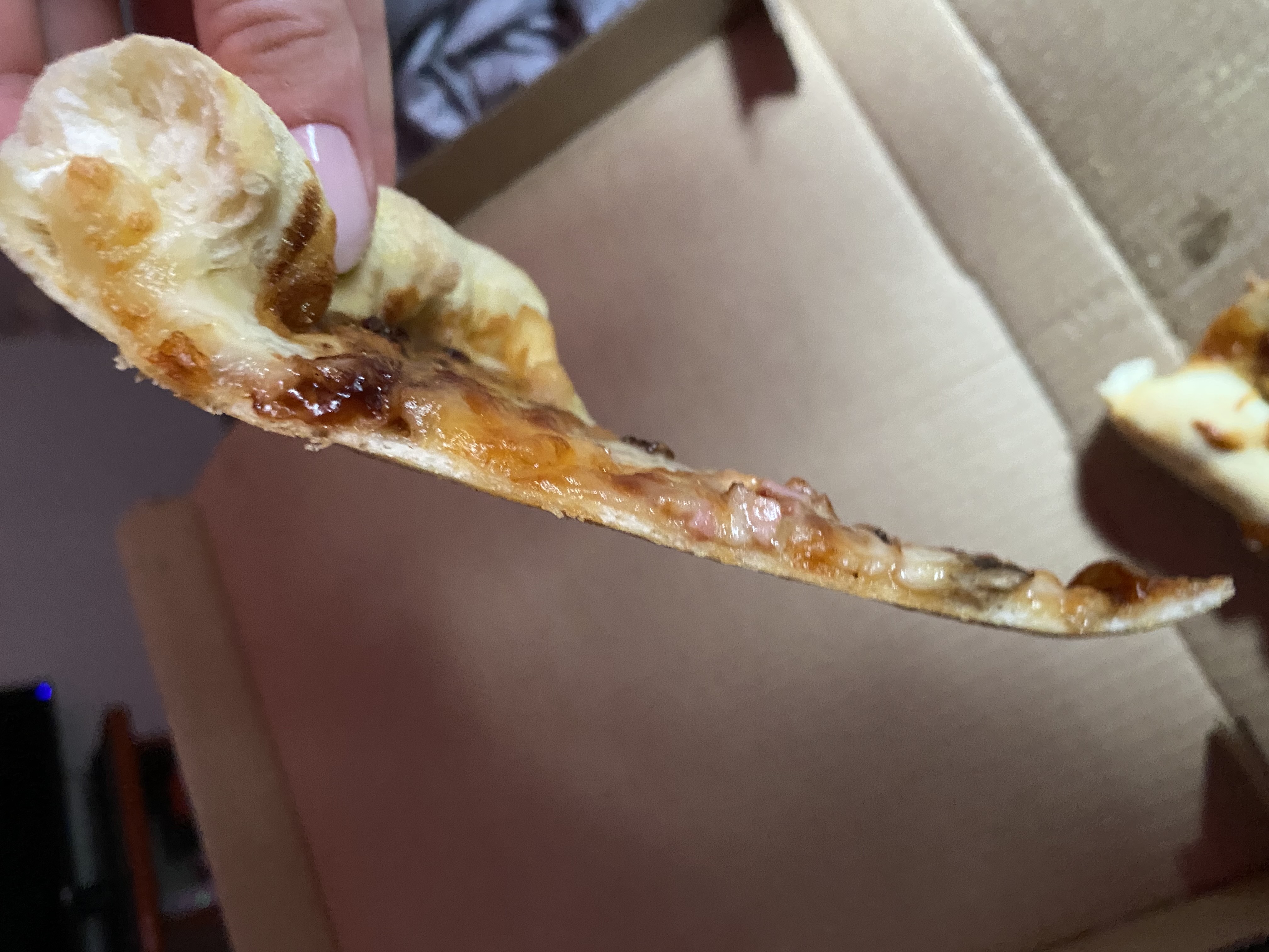 Она почти прозрачная, начинки на пару миллиметров. Доминос, вы считаете это нормально?