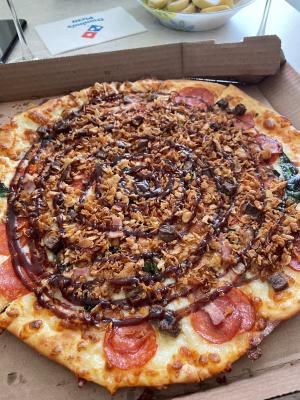 Все супер! Заказывали 5 пицц ( ЭкстраваганZZа, Тоскана, Мюнхенская, Барбекю, Доминос Фирменная). Пицца вкусная полноценная, по наполнению ничем не отличается от неакционной, приятная скидка, доставка быстрая оперативная, вежливый доброжелательный курьер. Благодарю Доминос и желаю вам только довольных клиентов!