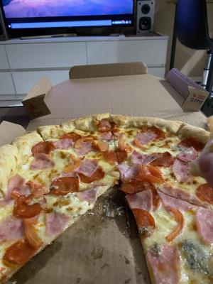 Заказывала 31го числа на работу для коллектива (3 штуки). Переживала, что к обеду не успеют, но всё быстро приготовили и привезли. Пицца разлетелась в мгновение ока.