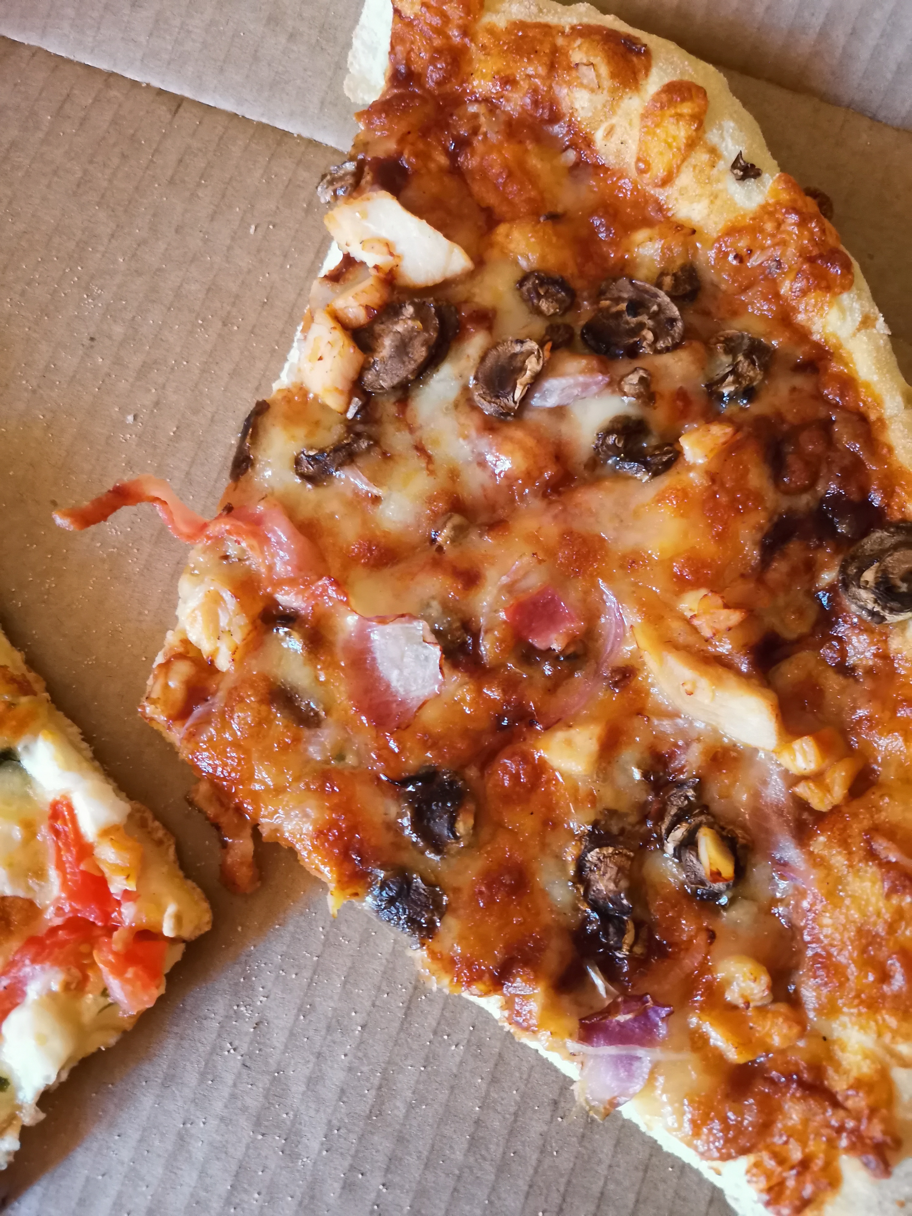 В прошлый раз заказывала- всë было супер. Начинки много, привезли быстро, пицца была горячаяя.