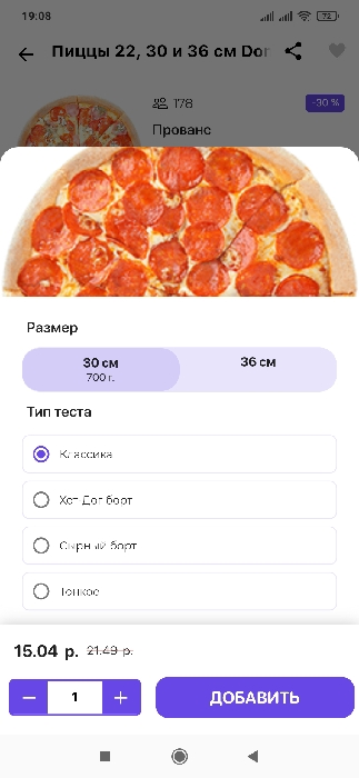 - Промокод дает право на скидку 30% на доставку и скидку 40% на самовывоз пиццы, представленные в онлайн-заказе от Domino’s Pizza