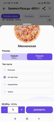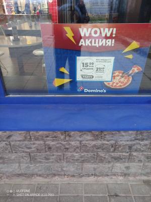 - Промокод дает право на скидку 30% на доставку и скидку 40% на самовывоз пиццы, представленные в онлайн-заказе от Domino’s Pizza