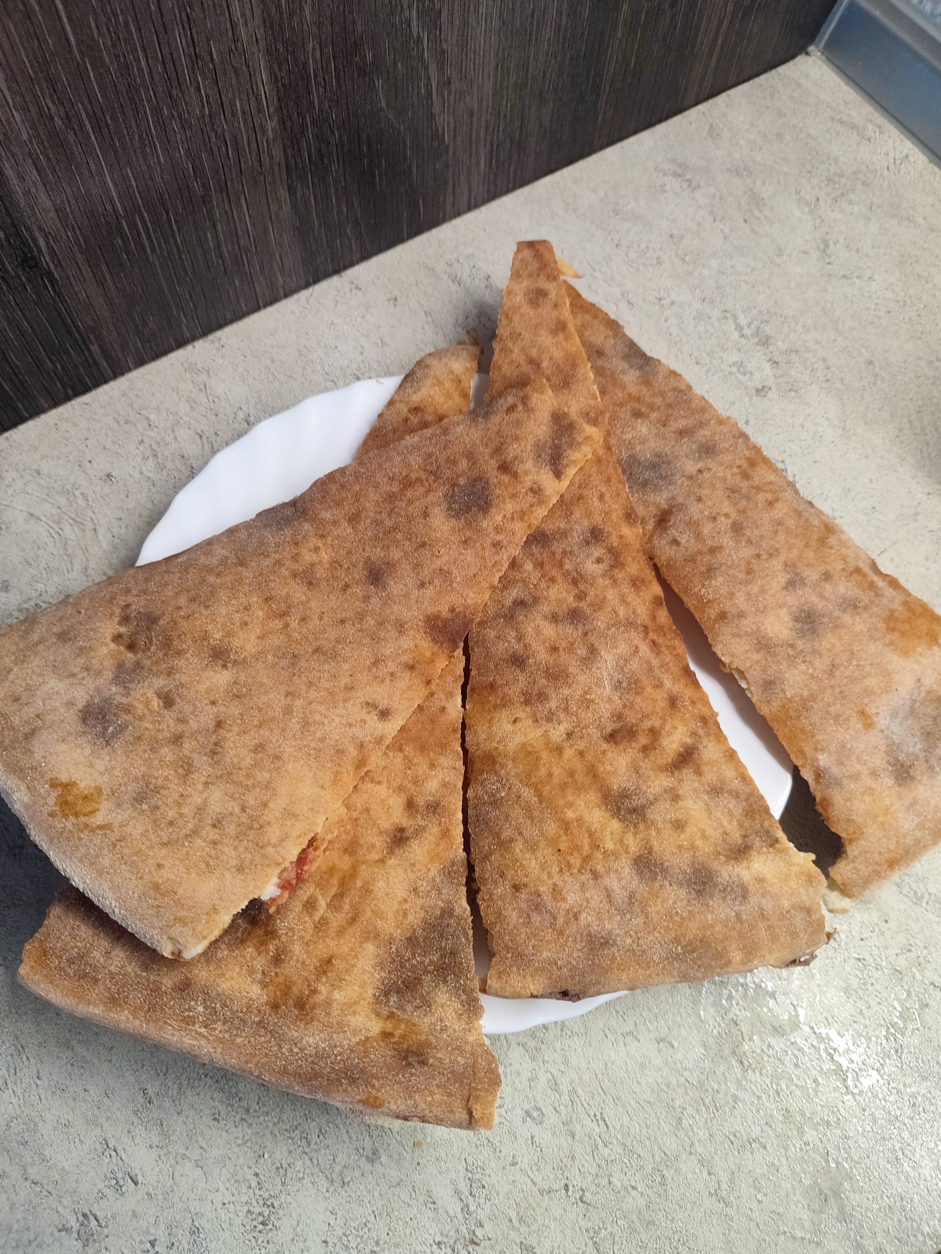 Состав: моцарелла, чесночный соус, кетчуп, ветчина, грибы, пепперони, курица, томат, фета