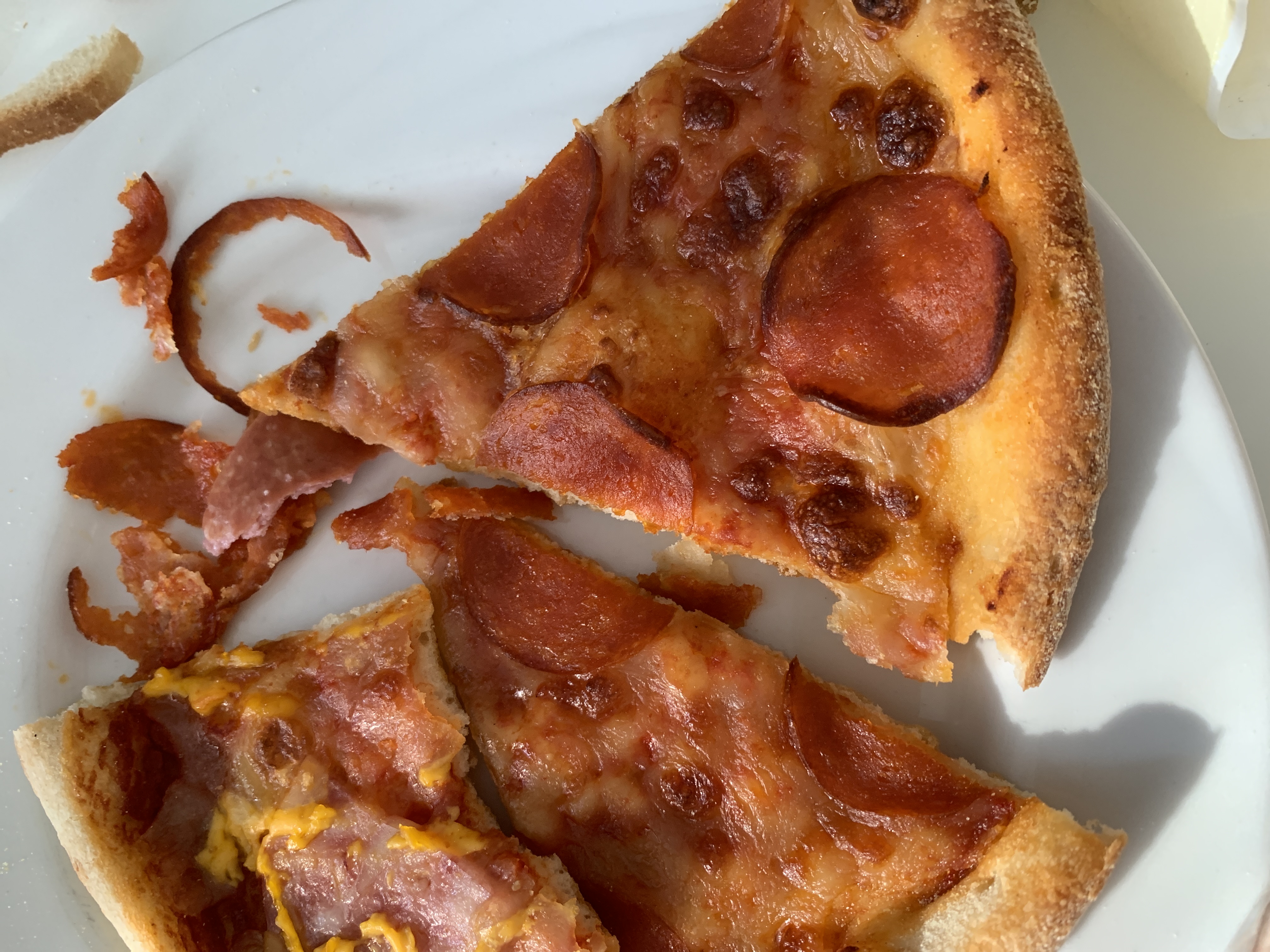 Состав: моцарелла, бекон, свинина, грибы, лук репчатый