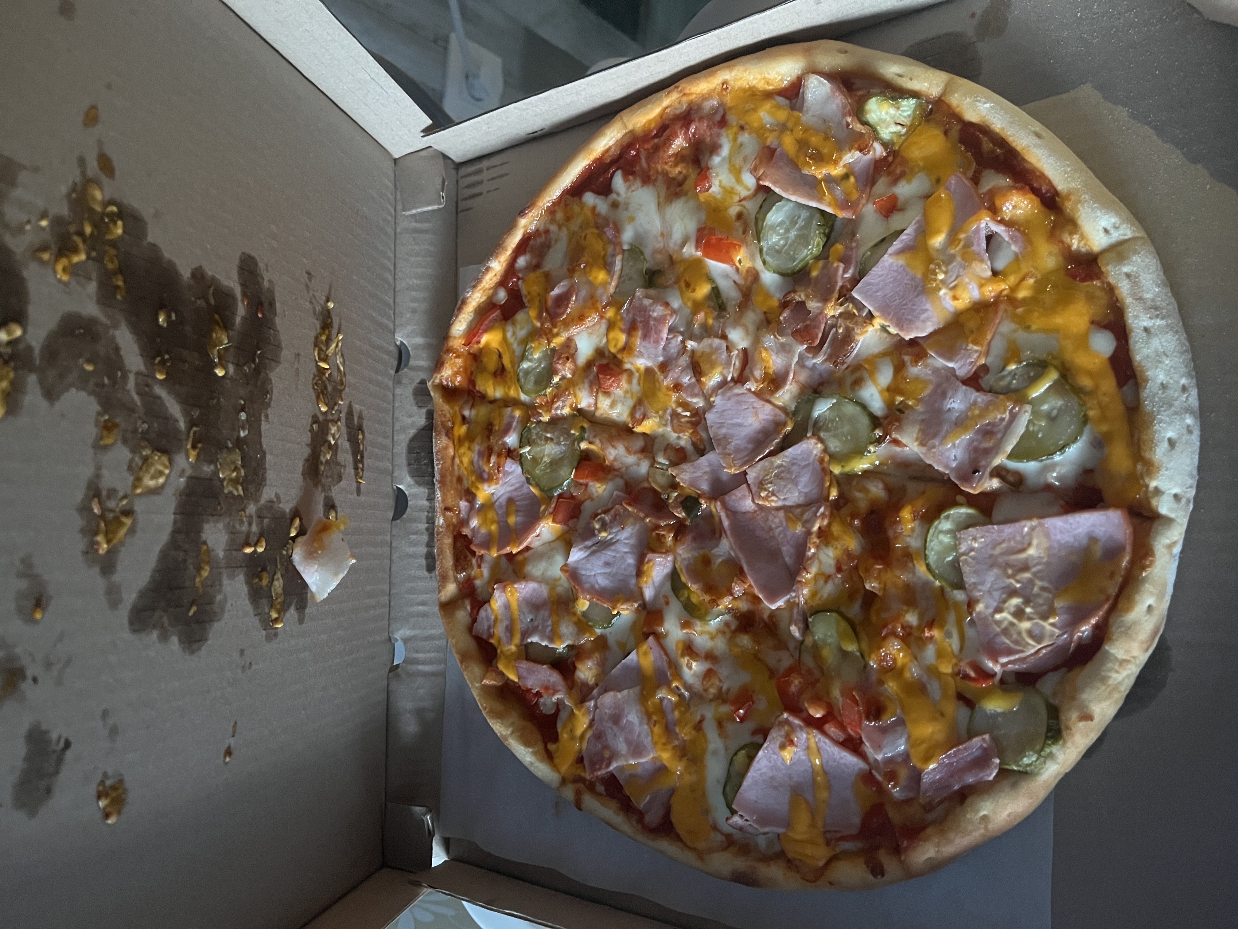 Пицца была очень вкусной, горячей! Доставили за 30 минут после заказа 😍