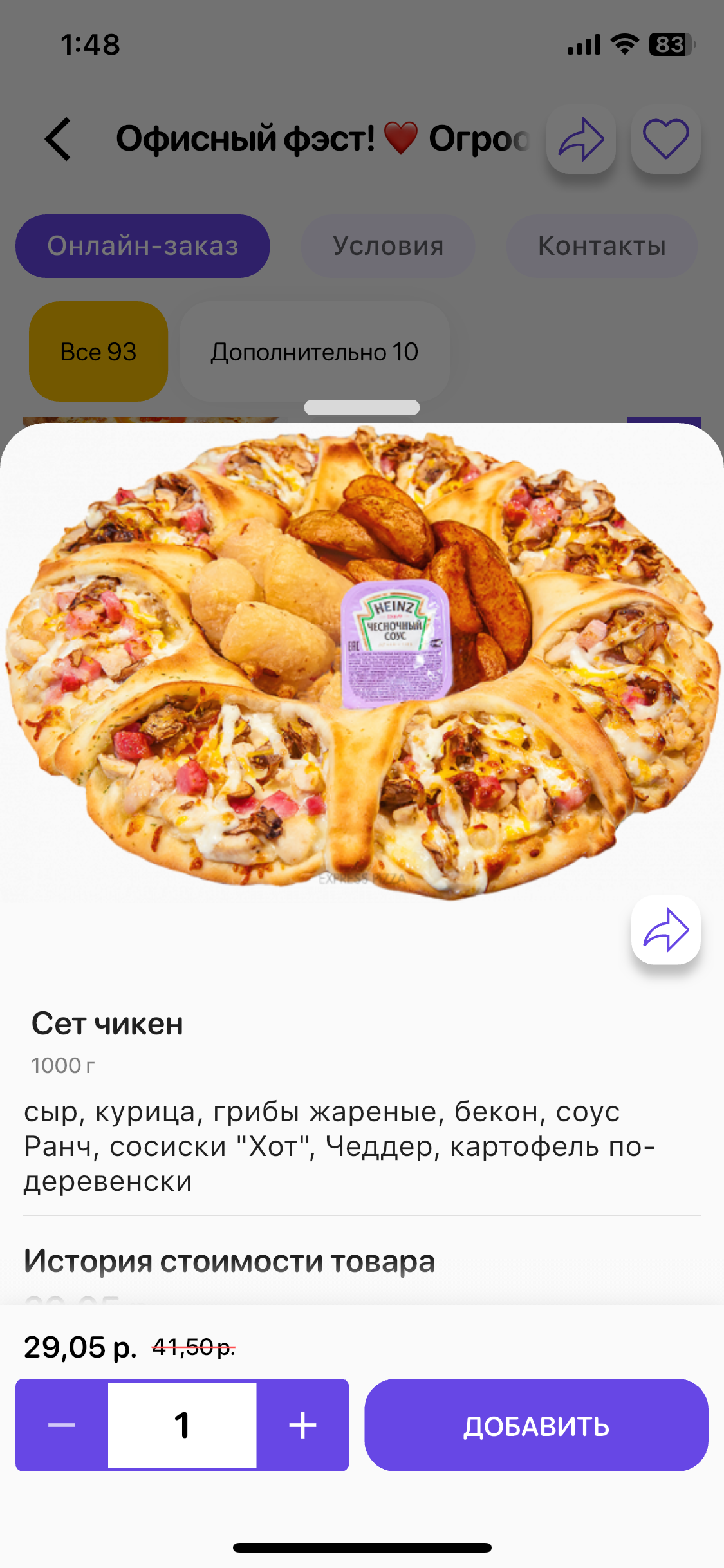 - пицца "Ветчина и грибы": 17 р. 34 р.