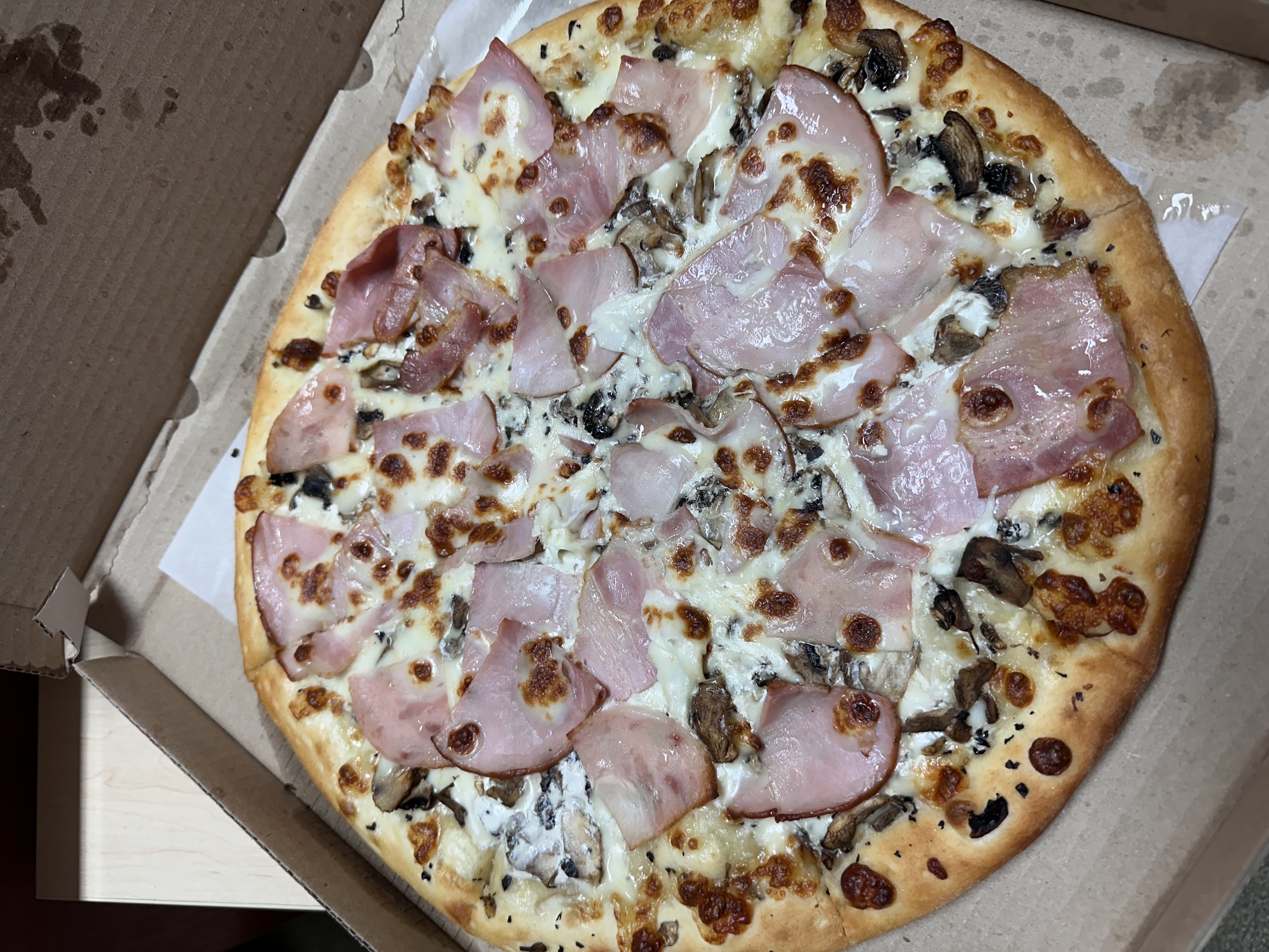 Состав: моцарелла, сливки, грудинка, ветчина, бекон