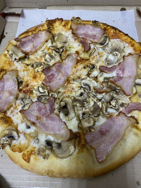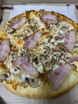 Состав: моцарелла, бекон, свинина, грибы, лук репчатый