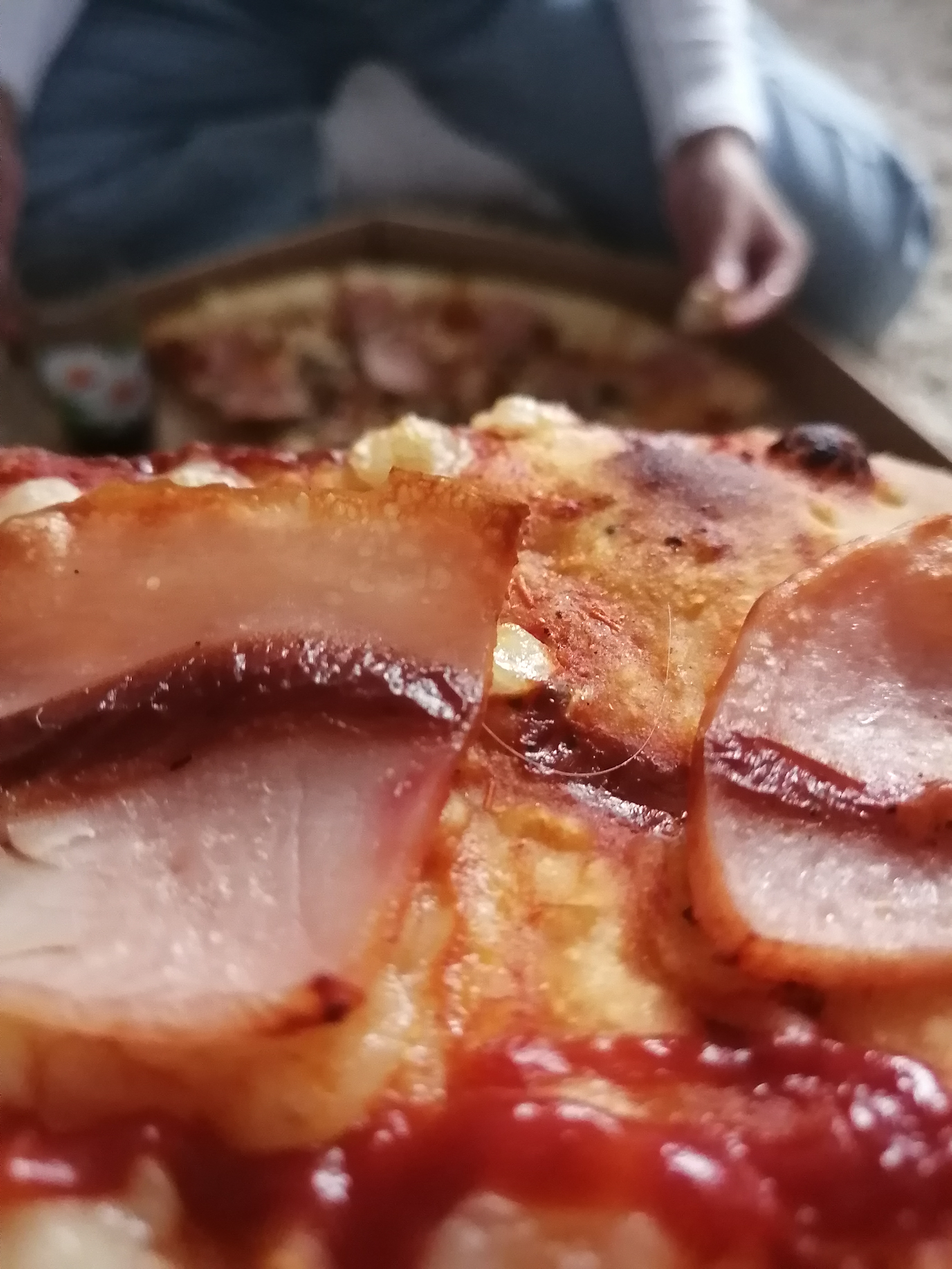 - мега-пицца "Компанейская" (60 см, 2000 г): моцарелла, пицца-соус, помидор, ветчина куриная, пепперони, бекон, лук маринованный, колбаски охотничьи, огурцы маринованные