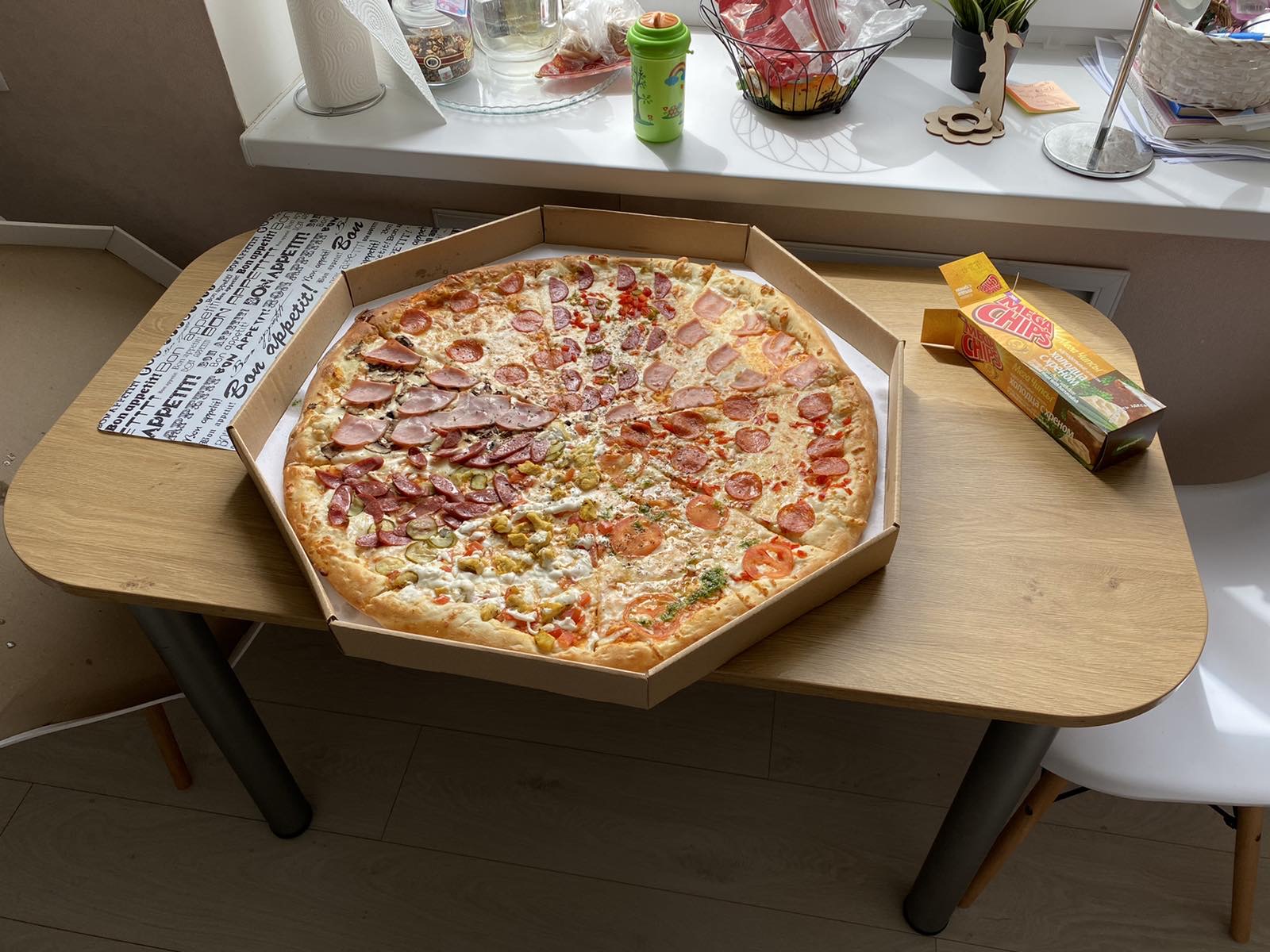 Добрый день! 30.05.2022 заказала на день рождения к столу гостям огромную пиццу, хотелось удивить размером и вкусно покушать.