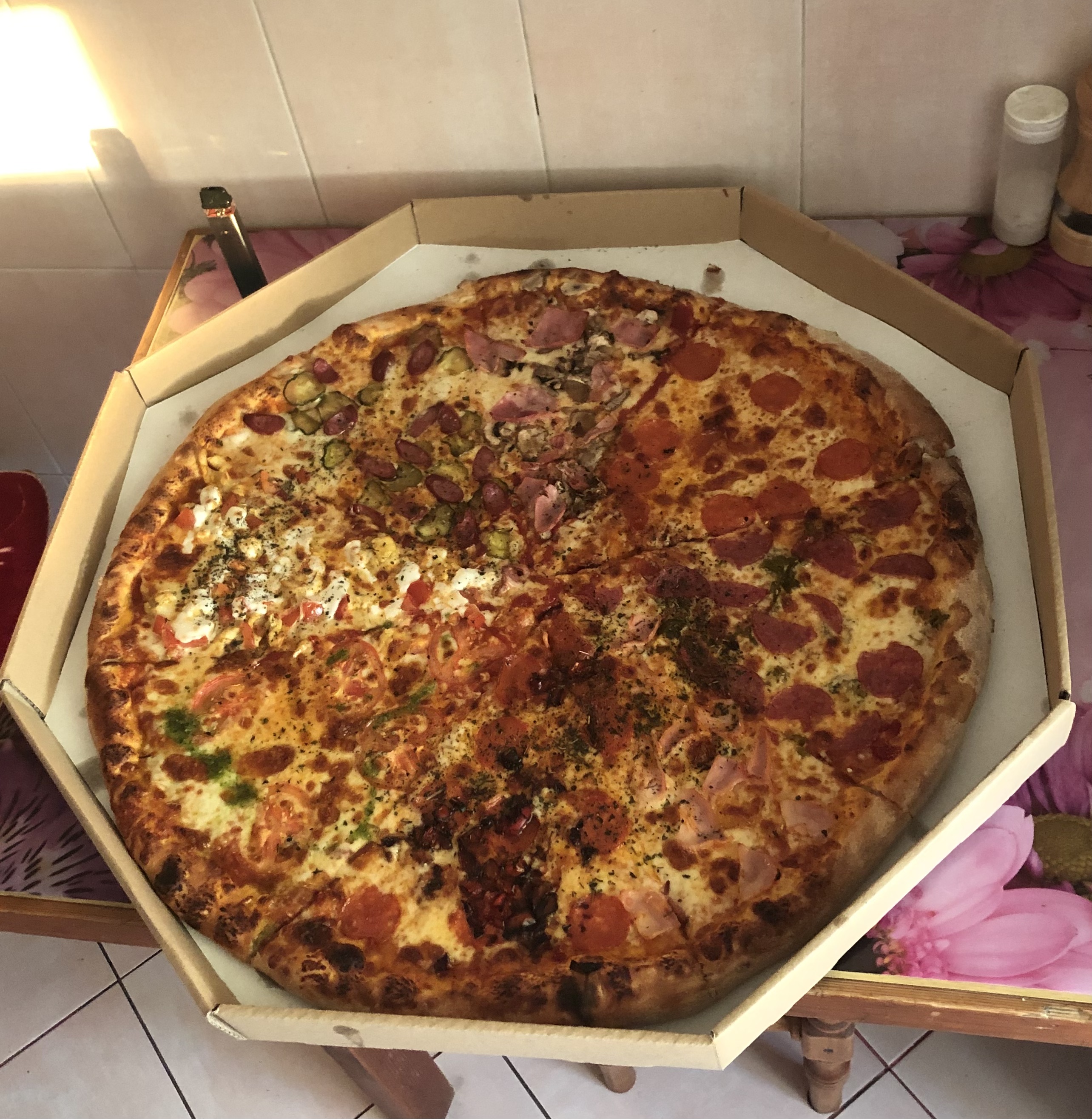 Заказывали пиццу 31.05.22- все быстро, четко, вкусно! Однозначно будем заказывать ещё. Заказывали 8 ломтиков, каждый кусочек со своим вкусом.