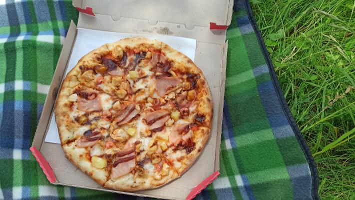 Заказали пиццу "Панскую" на самовывоз. Пицца была с пылу с жару:) Начинки очень много, теста мало, всё как надо) Эта была вкуснющая пицца, с подругой приговорили её за минут 10)) Довольно неприметная пиццерия с виду, но очень достойная на вкус и цена супер классная по Сливкам)