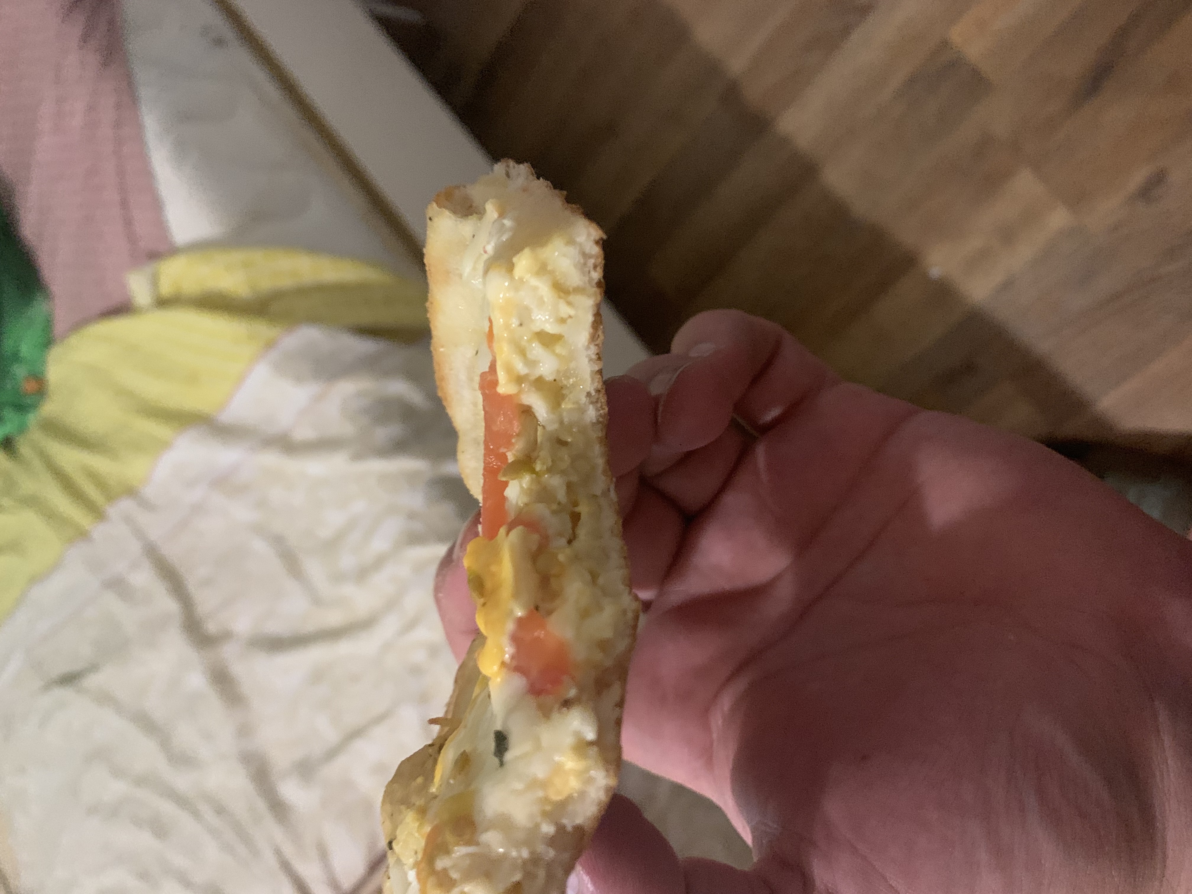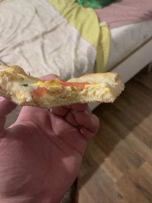 Состав: моцарелла, бекон, ветчина, томат, яйцо, лук