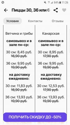 - Промокод дает право на скидку до 64% на сет пицц в пиццерии "Express pizza"