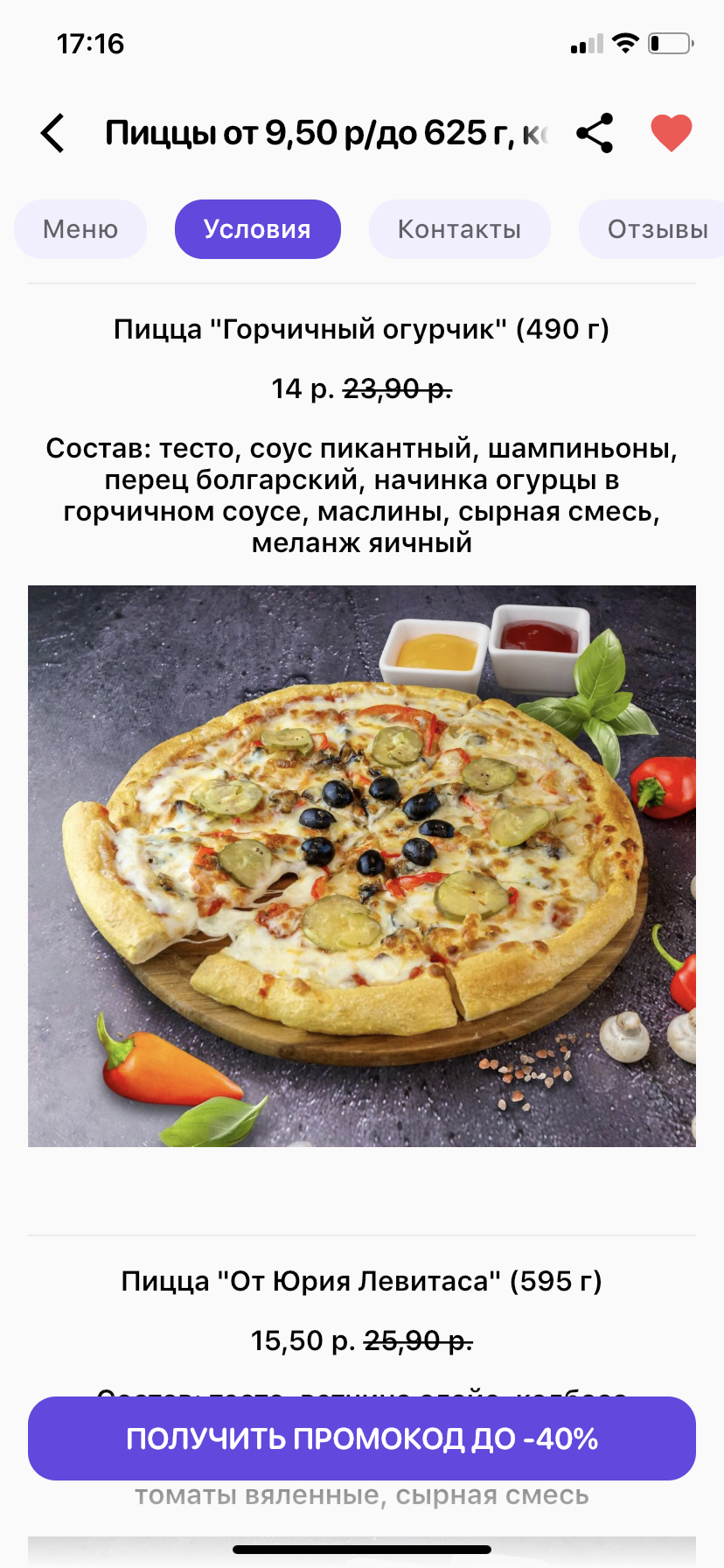 - Промокод дает право на скидку до 40% на пиццы и комбо от "Free&Co"