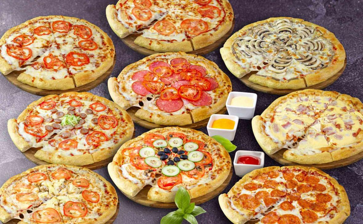 - пицца "Мясная XXL" (610 г): тесто, соус пикантный, соус для пиццы, колбаса сервелат, колбаска куриная, томаты вяленные, меланж яичный, сырная смесь