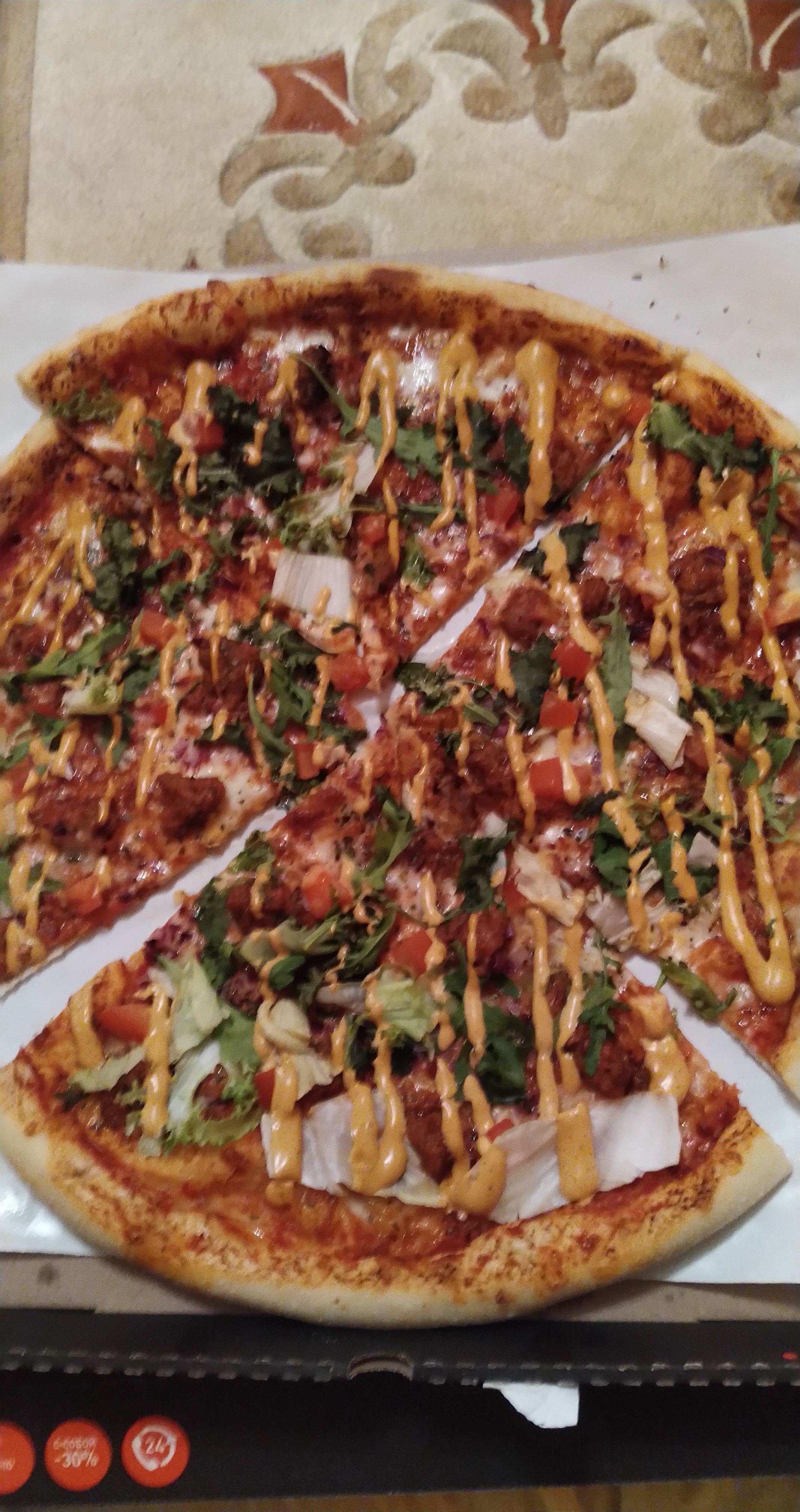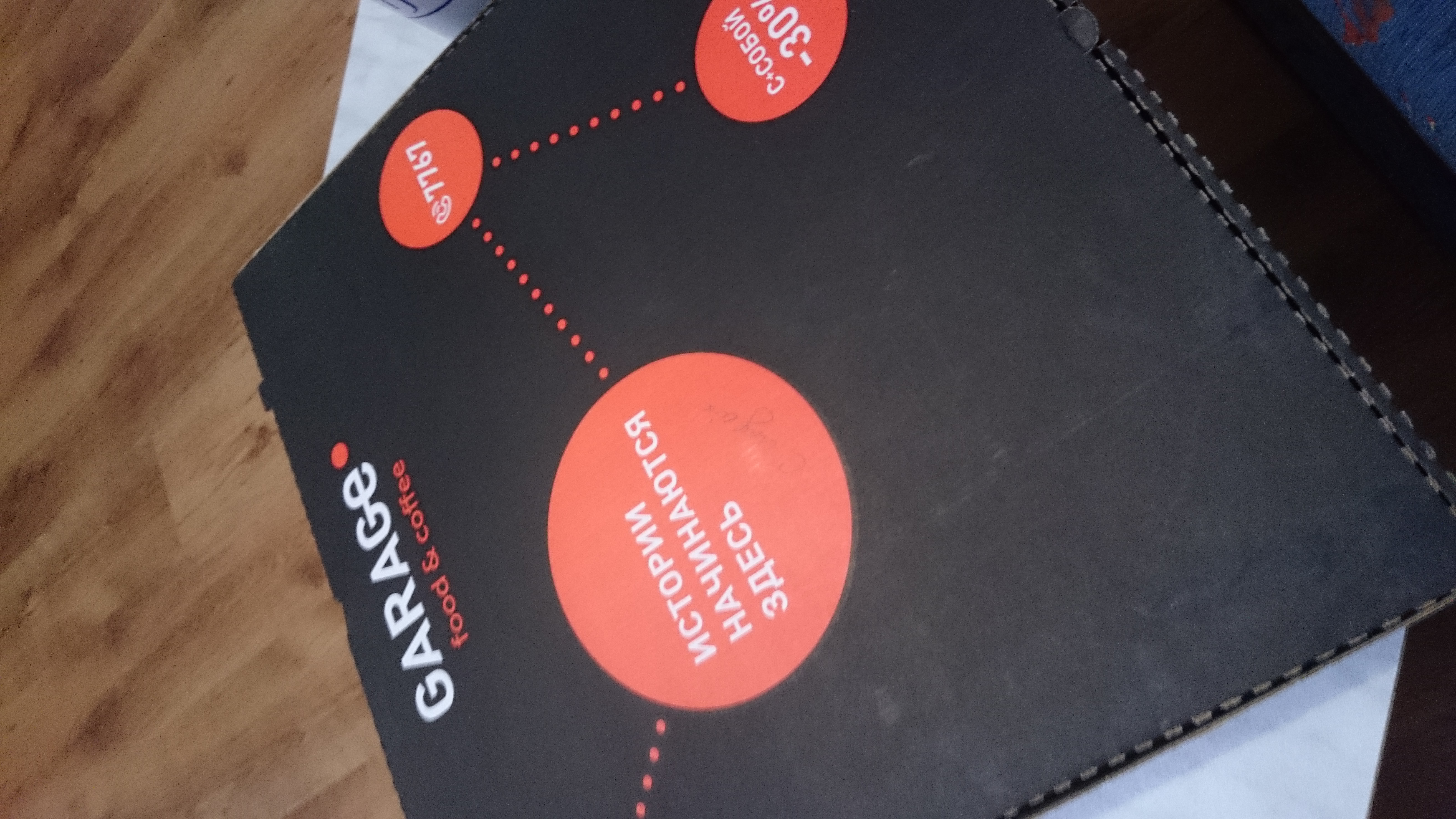 - Промокод дает право на скидку 40% на мега-пиццы (43 см) навынос и в кафе "GARAGE"