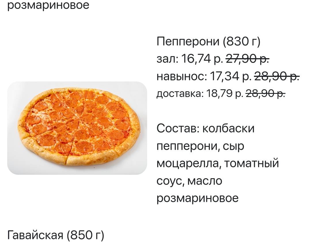 - Стоимость пиццы навынос или в кафе: от 17,94 р. от 29,90 р.