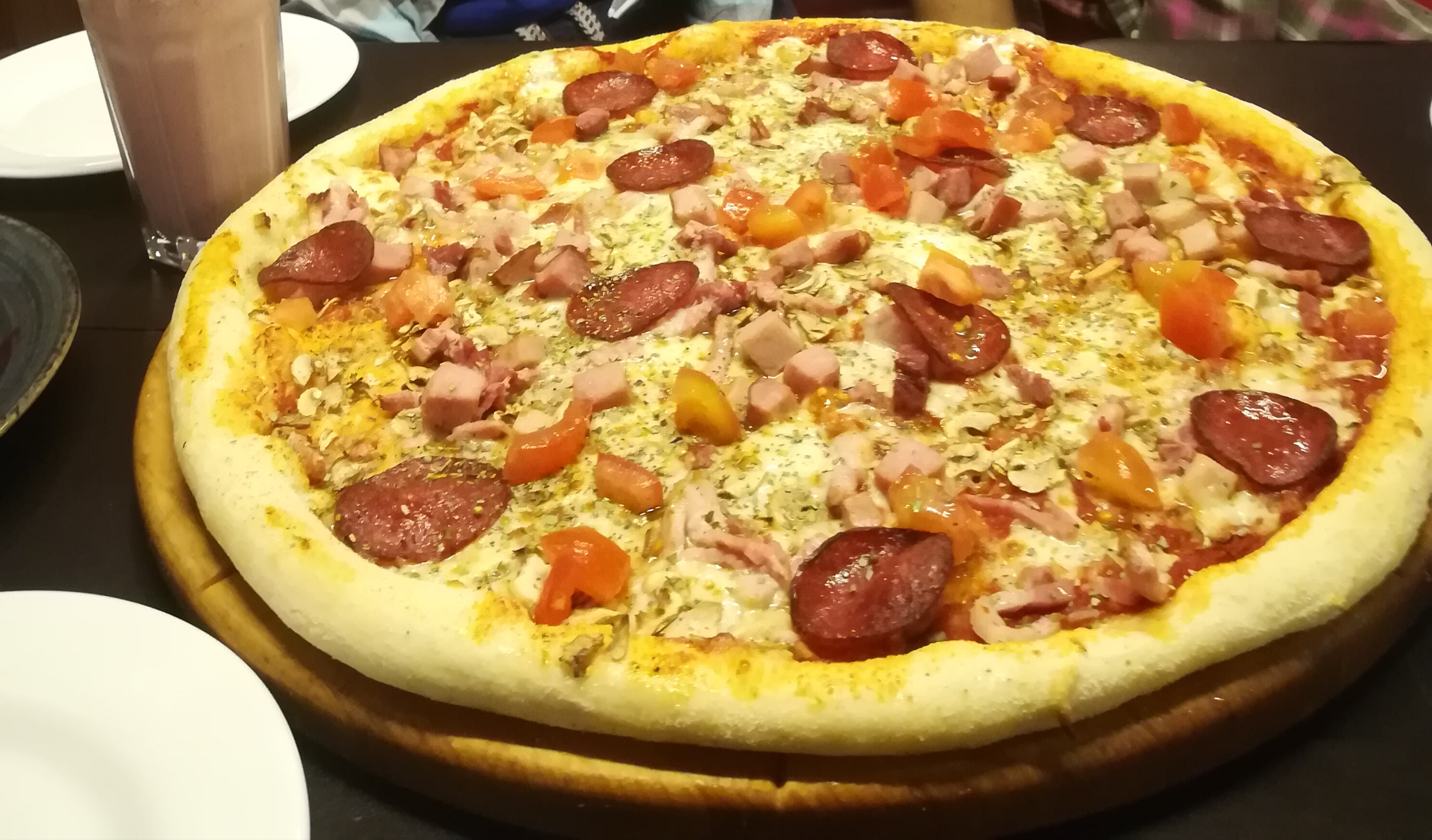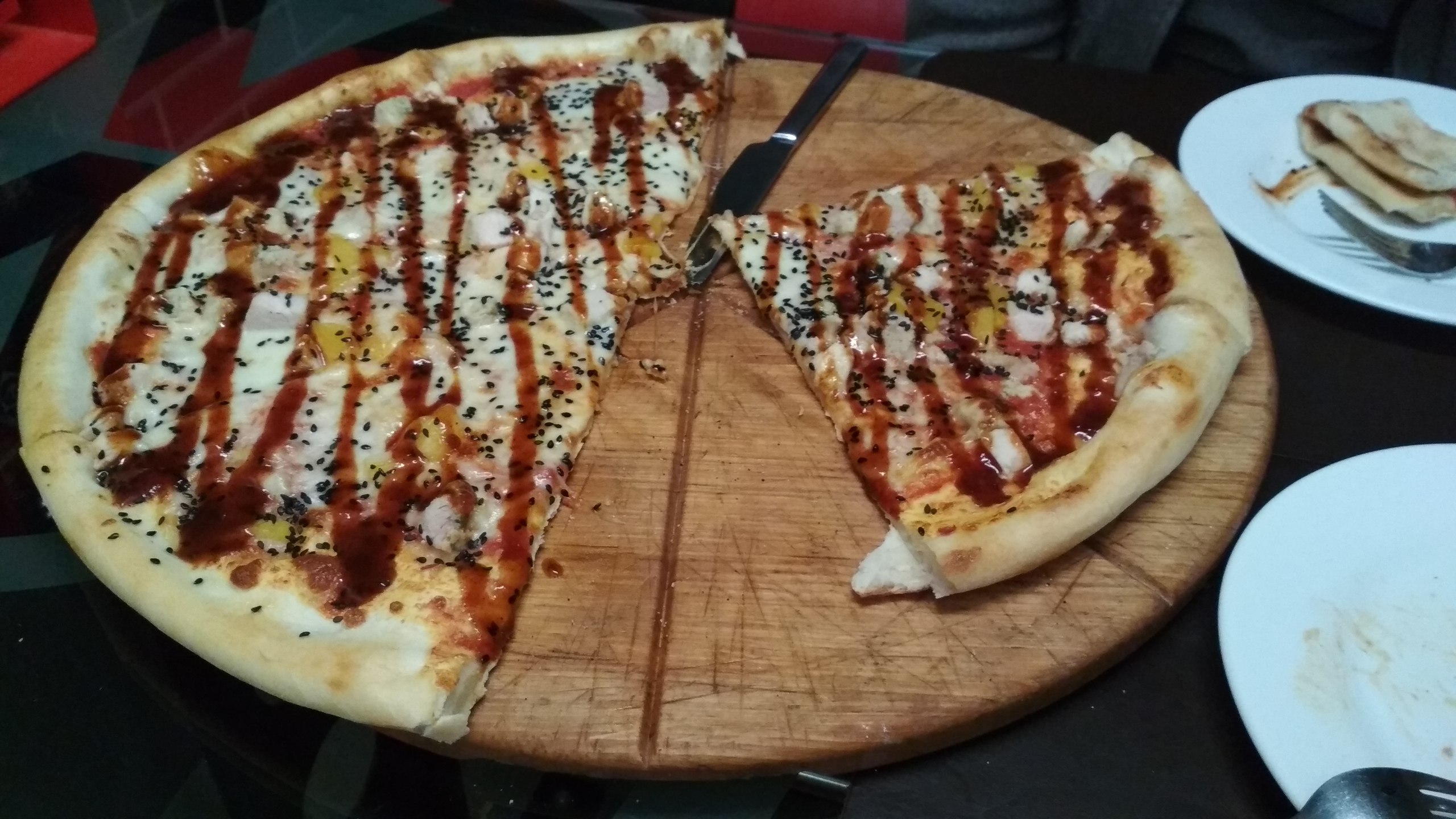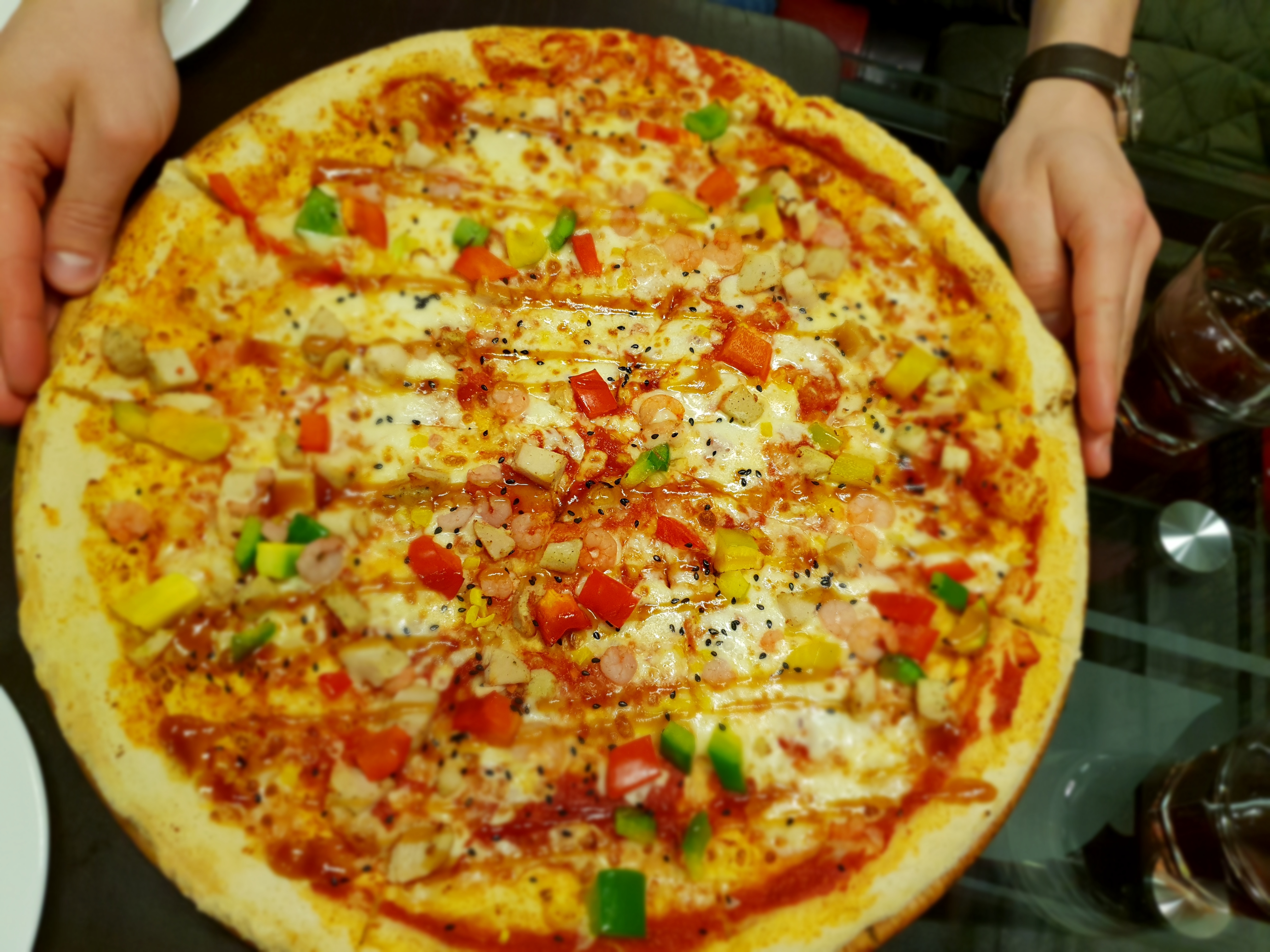 Были в ТЦ МОМО. Пицца была очень вкусная. Ели в троем,если честно, то даже объелись)