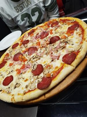 Пицца была очень большой и очень вкусной. Персонал весьма приветлив. Отличное место для отдыха.