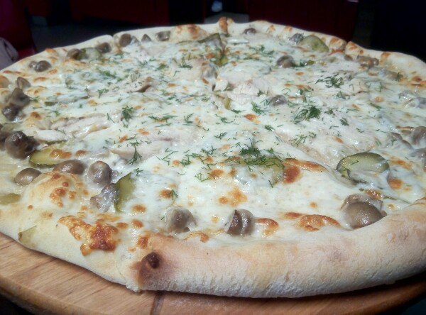 Были с детьми в кафе. Покупали по акции пиццу с курицей и грибами. Очень много теста!!! Начинки тоже достаточно. Пицца была едва теплая. Мне не очень понравилось,дети были в восторге.