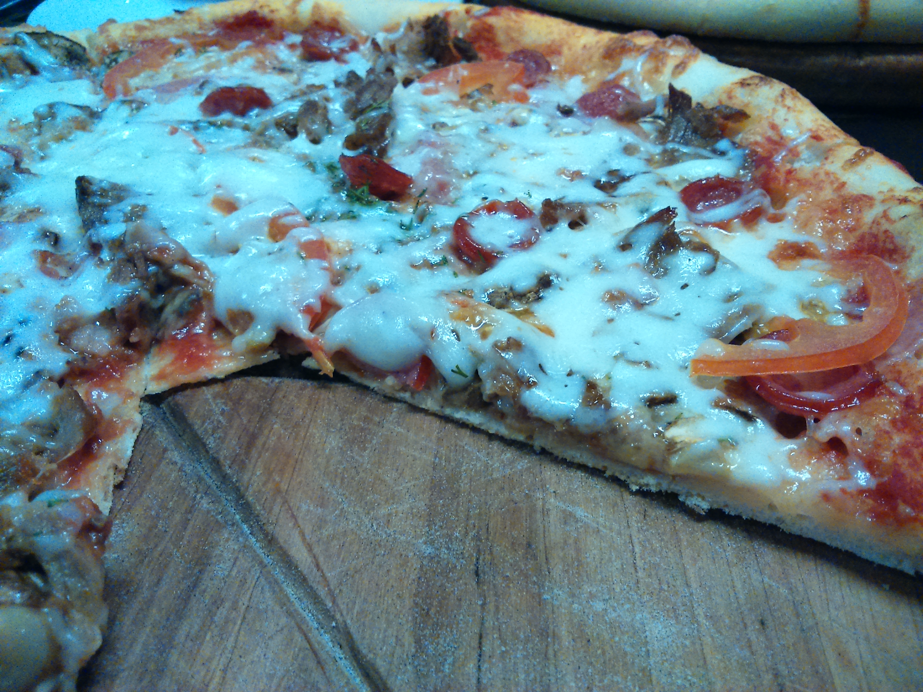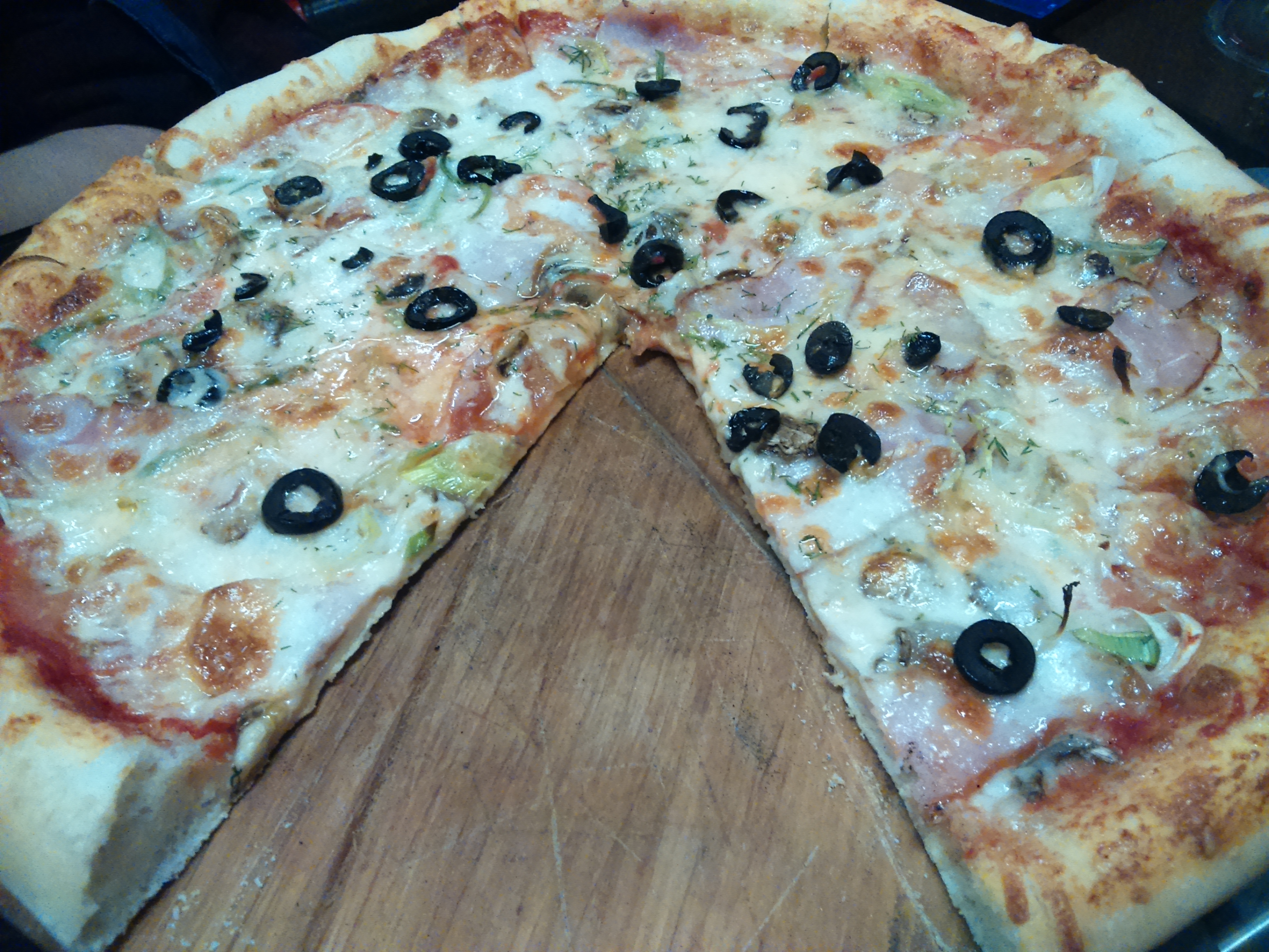 Спасибо, Гараж! Пицца была огромная(с ветчиной, грибами и томатами). Очень вкусная, горячая, свежая, начинки много!