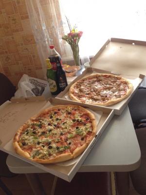 Заказывалм две пиццы 43см по Акции -50% (да, настоящие -50%, смотрели на сайтах конкурентов аналогичные илм похожие пиццы) 2 кг всего за 26 руб))