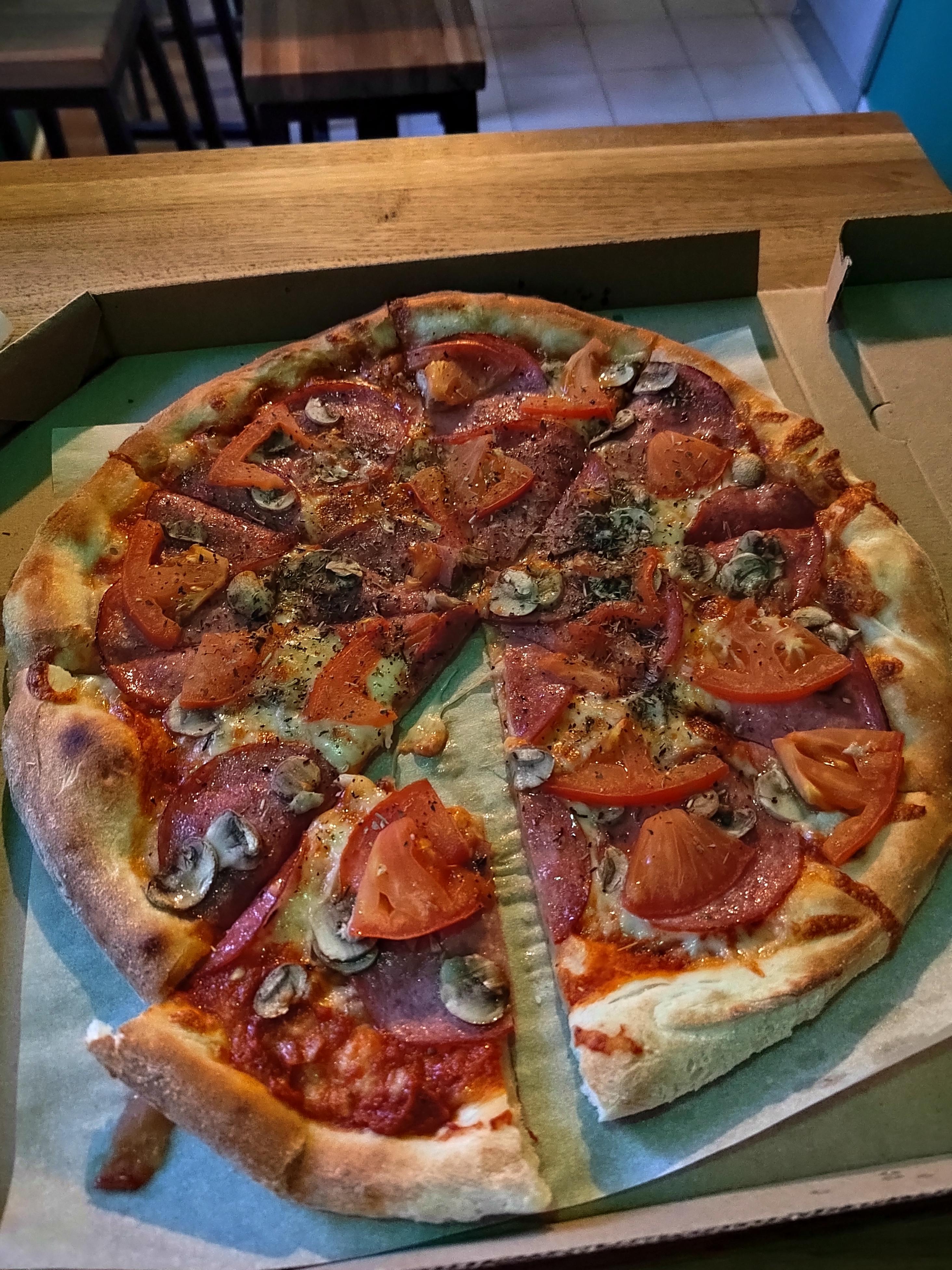 Отличная пицца, быстро приготовили, вкусно! Рекомендую, очень довольны!