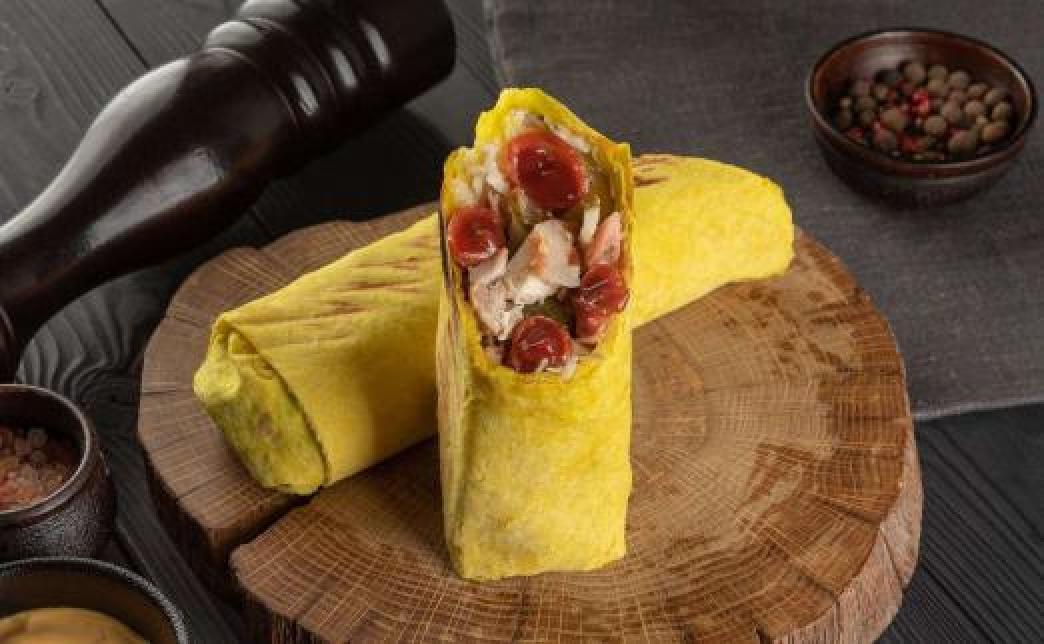 Состав: лаваш, фирменный соус, курица гриль, томат, маринованный огурец, салат из свежей капусты с морковью по-корейски, перец халапеньо, соус кавказский
