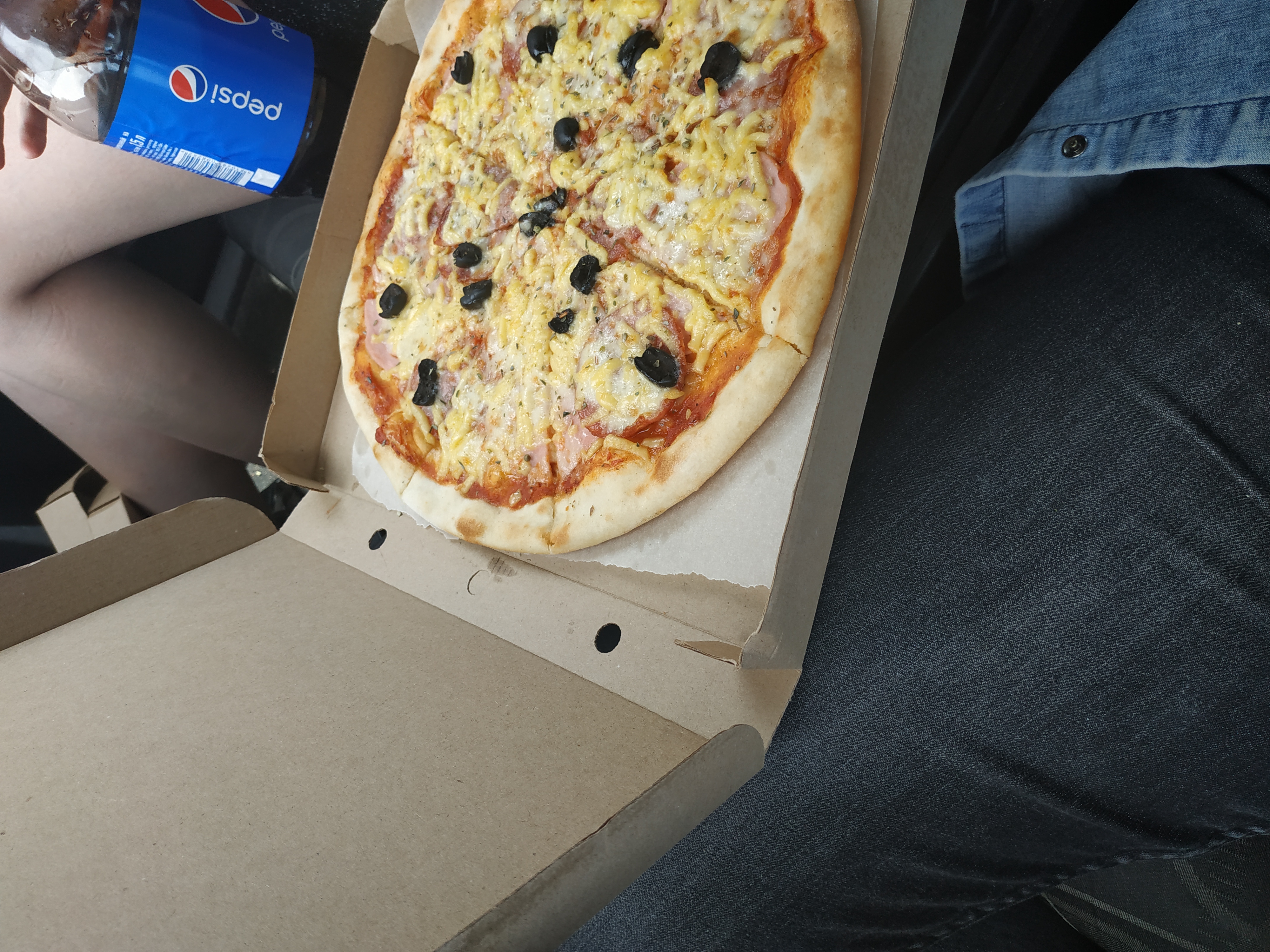 Состав: тесто, помидорная смесь, ветчина, салями, моцарелла, маслины, специи