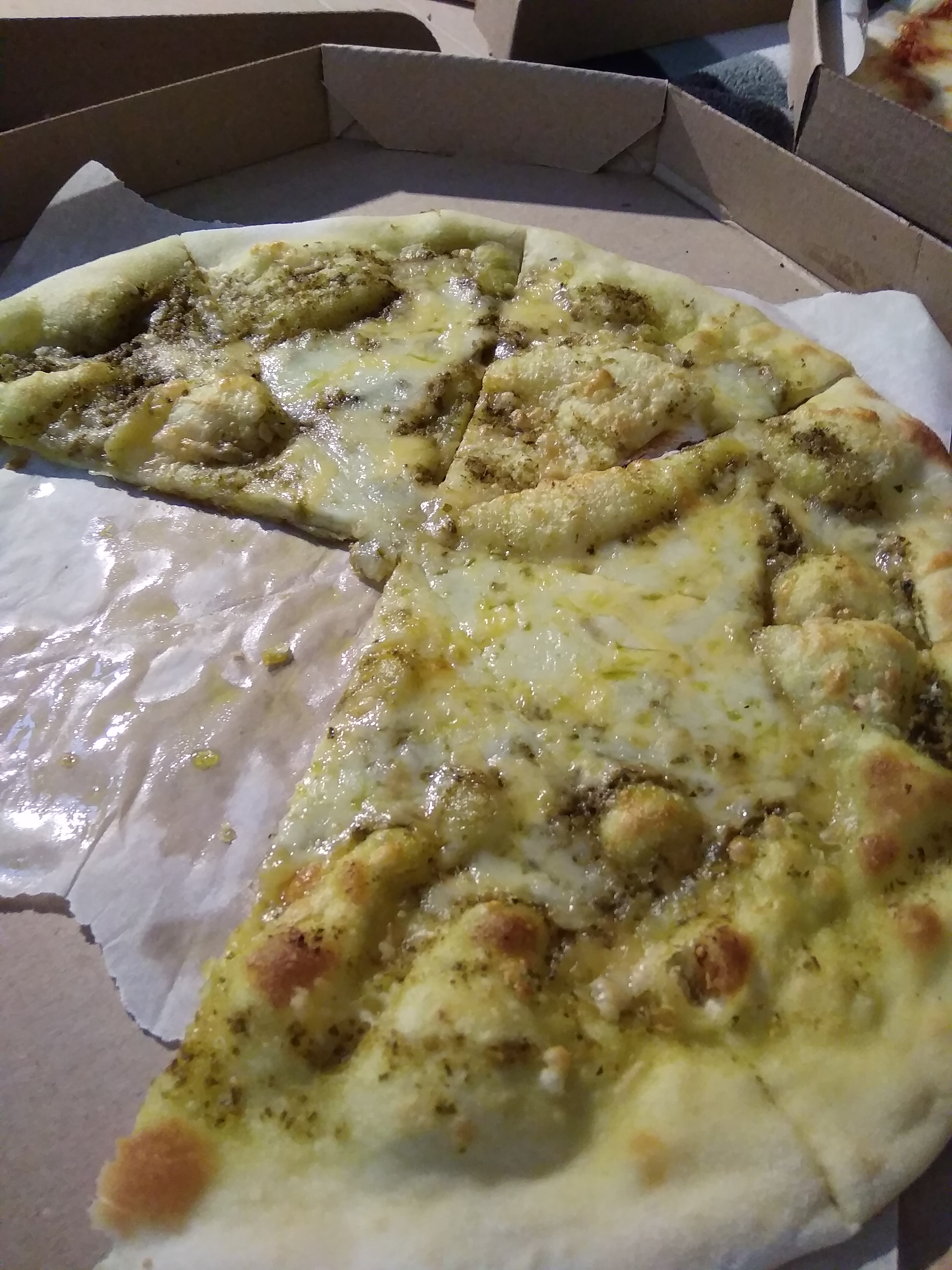 Состав: тесто, помидорная смесь, моцарелла, курица, цукини, шампиньоны, соус карри, масло чесночное, специи