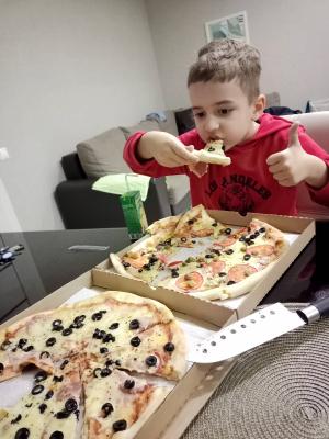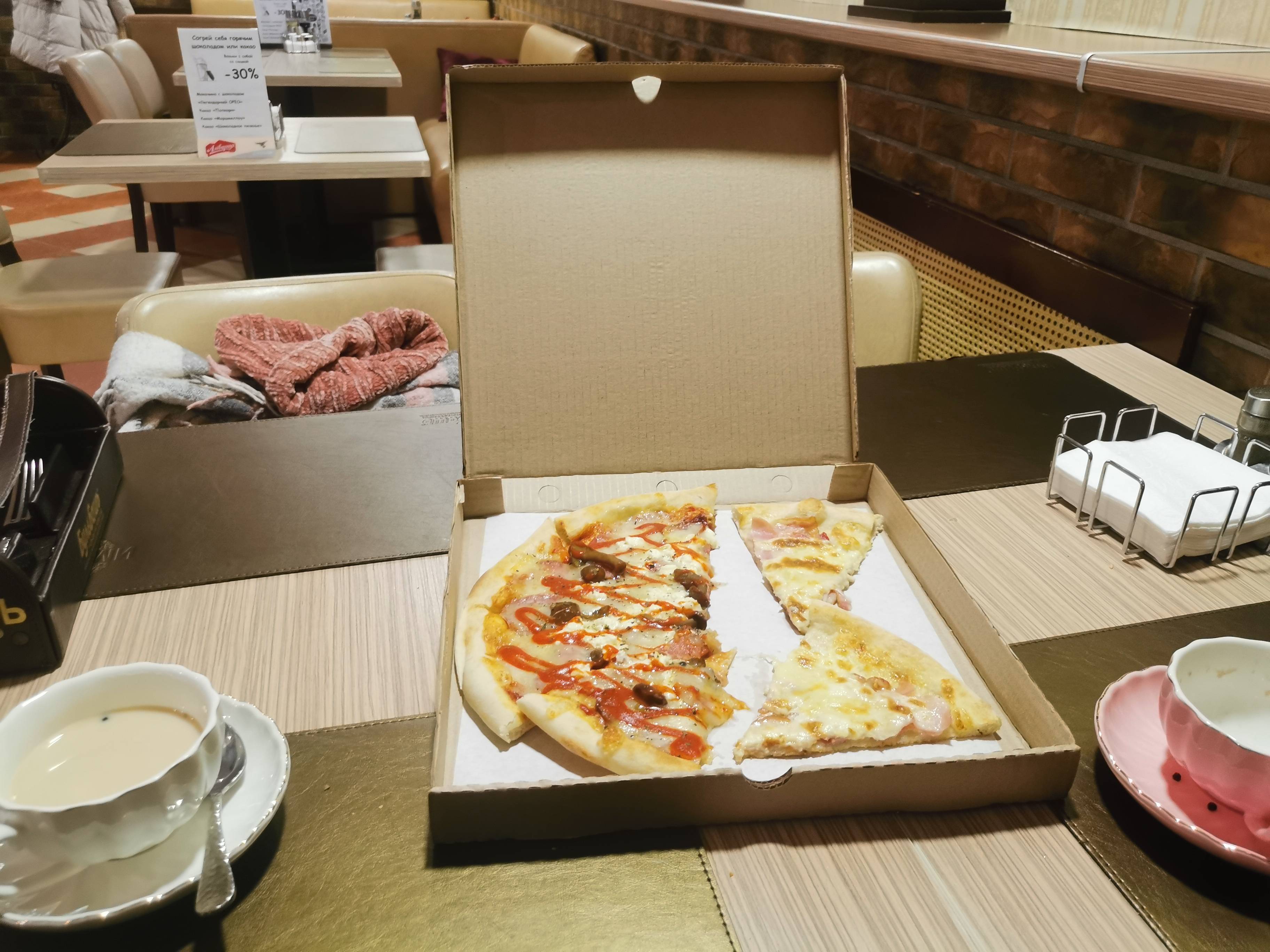 Состав: тесто, помидорная смесь, ветчина, салями, моцарелла, маслины, специи