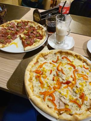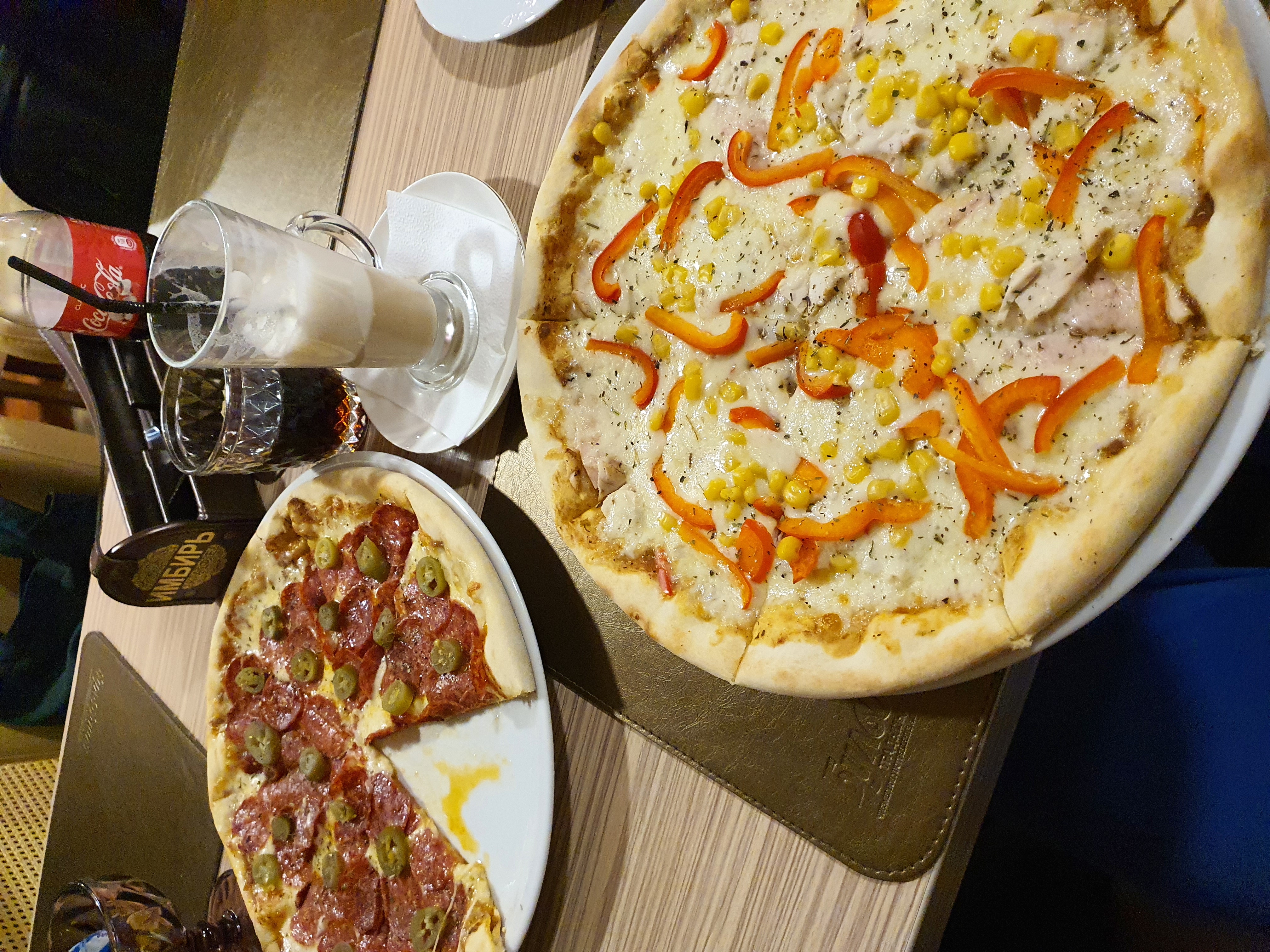 Состав: тесто, помидорная смесь, ветчина, салями, моцарелла, маслины, специи