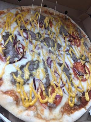 Состав: помидорная смесь, сыр моцарелла, говядина, томаты, лук, шампиньоны, американская горчица, специи
