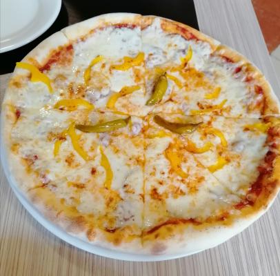 Состав: тесто, помидорная смесь, моцарелла, колбаса с/к, перец халапеньо, специи