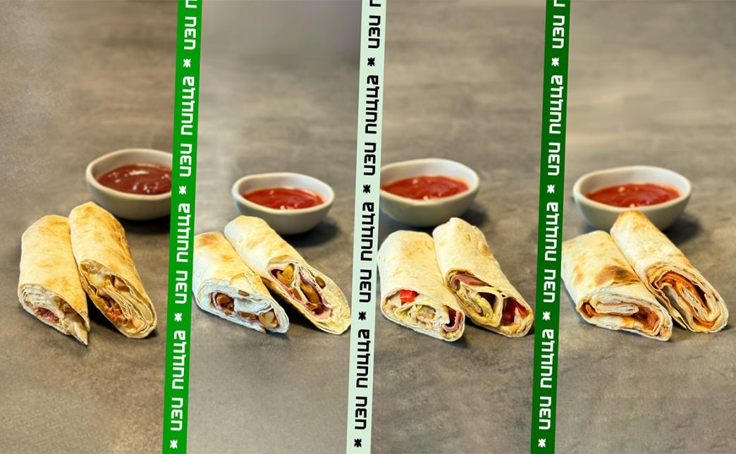 Состав: пшеничная тортилья, чесночный соус, сыр моцарелла, маринованные опята, ветчина, грибы гриль