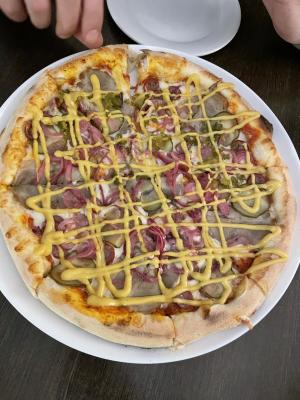 Пицца "Баварская" (580 г) 16,90 р. 26 р. Состав: фирменный соус, моцарелла, буженина, охотничьи колбаски, чеддер, маринованный огурец, лук красный маринованный, соус горчичный ![]()