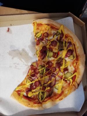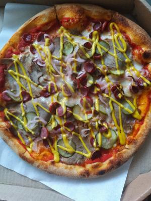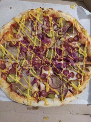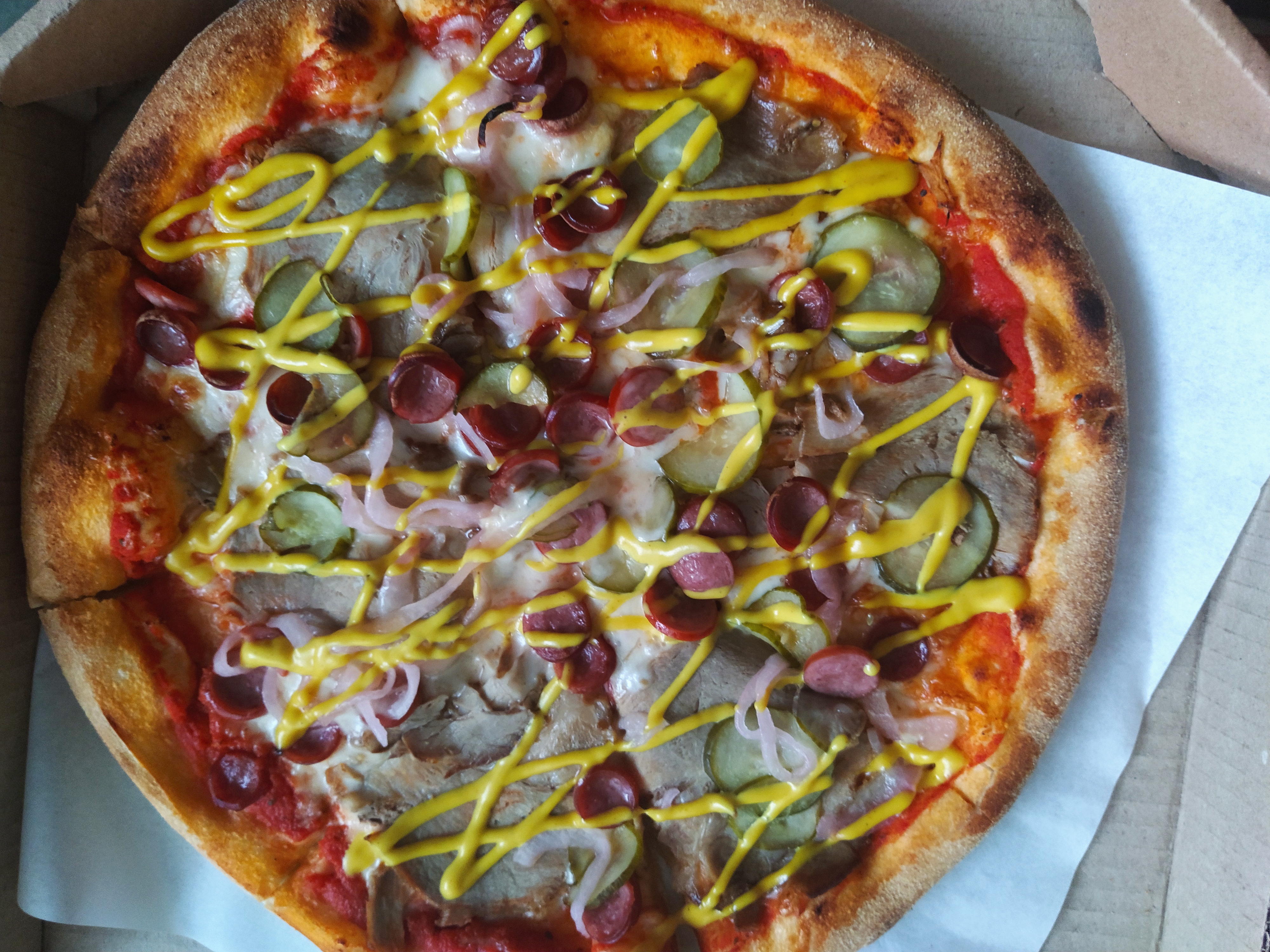 Пицца "Баварская" (580 г) 16,90 р. 26 р. Состав: фирменный соус, моцарелла, буженина, охотничьи колбаски, чеддер, маринованный огурец, лук красный маринованный, соус горчичный ![]()