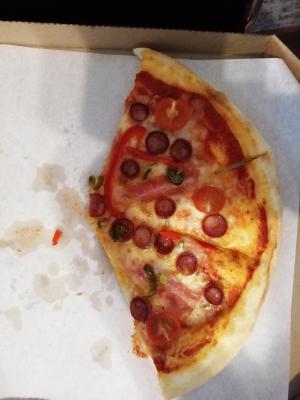 Пицца "Нью Йорк" (640 г) 16,90 р. 26 р. Состав: фирменный соус, моцарелла, бекон к/в, охотничьи колбаски, черри, сладкий перец, перец, халапеньо ![]()