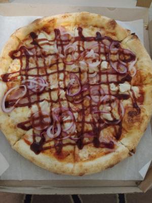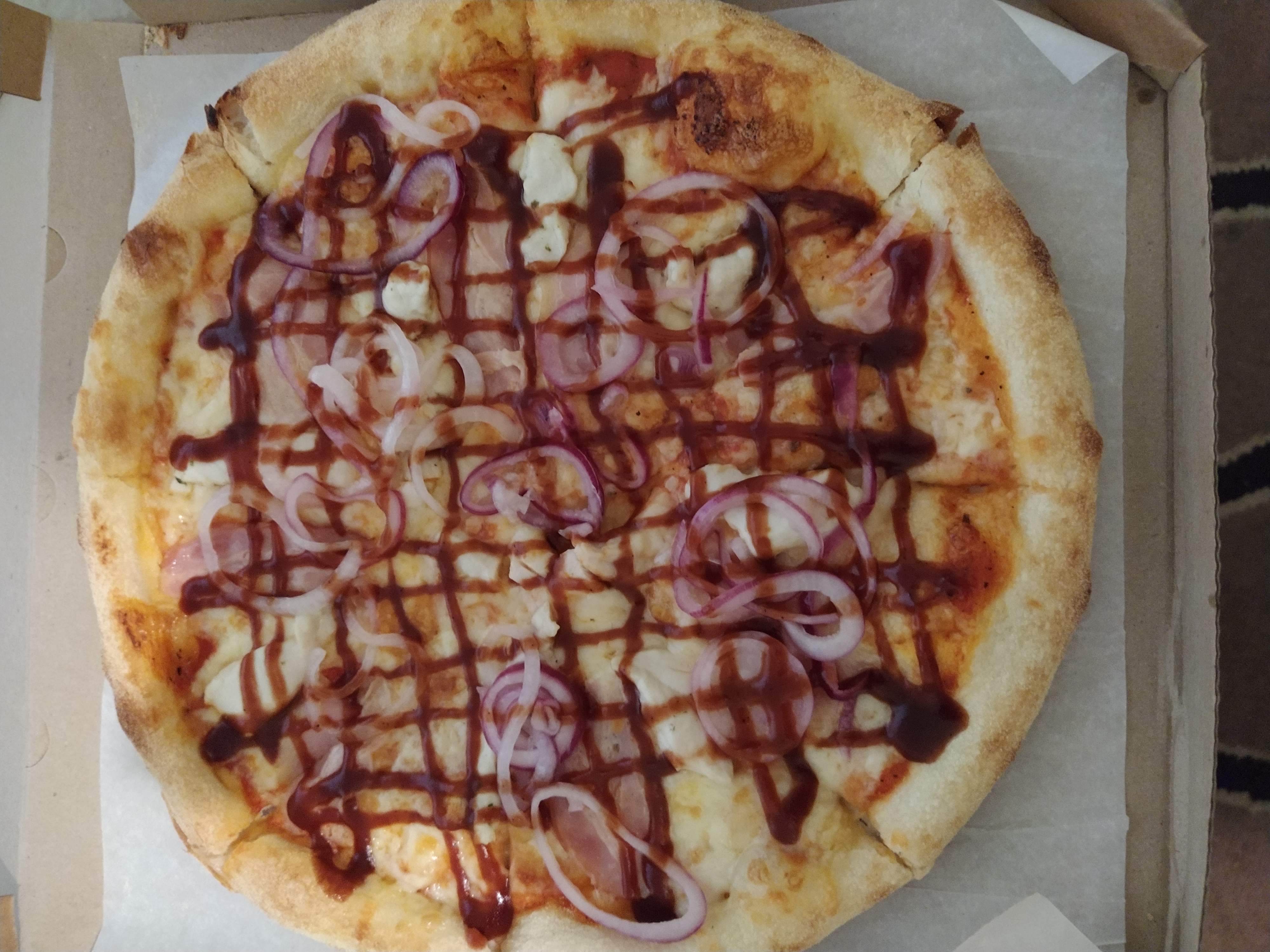 Пицца "Цыпленок BBQ" (560 г) 16,90 р. 26 р. Состав: фирменный соус, моцарелла, куриное филе, бекон к/в, красный лук, соус BBQ ![]()