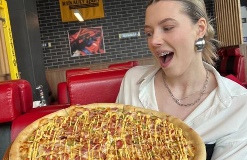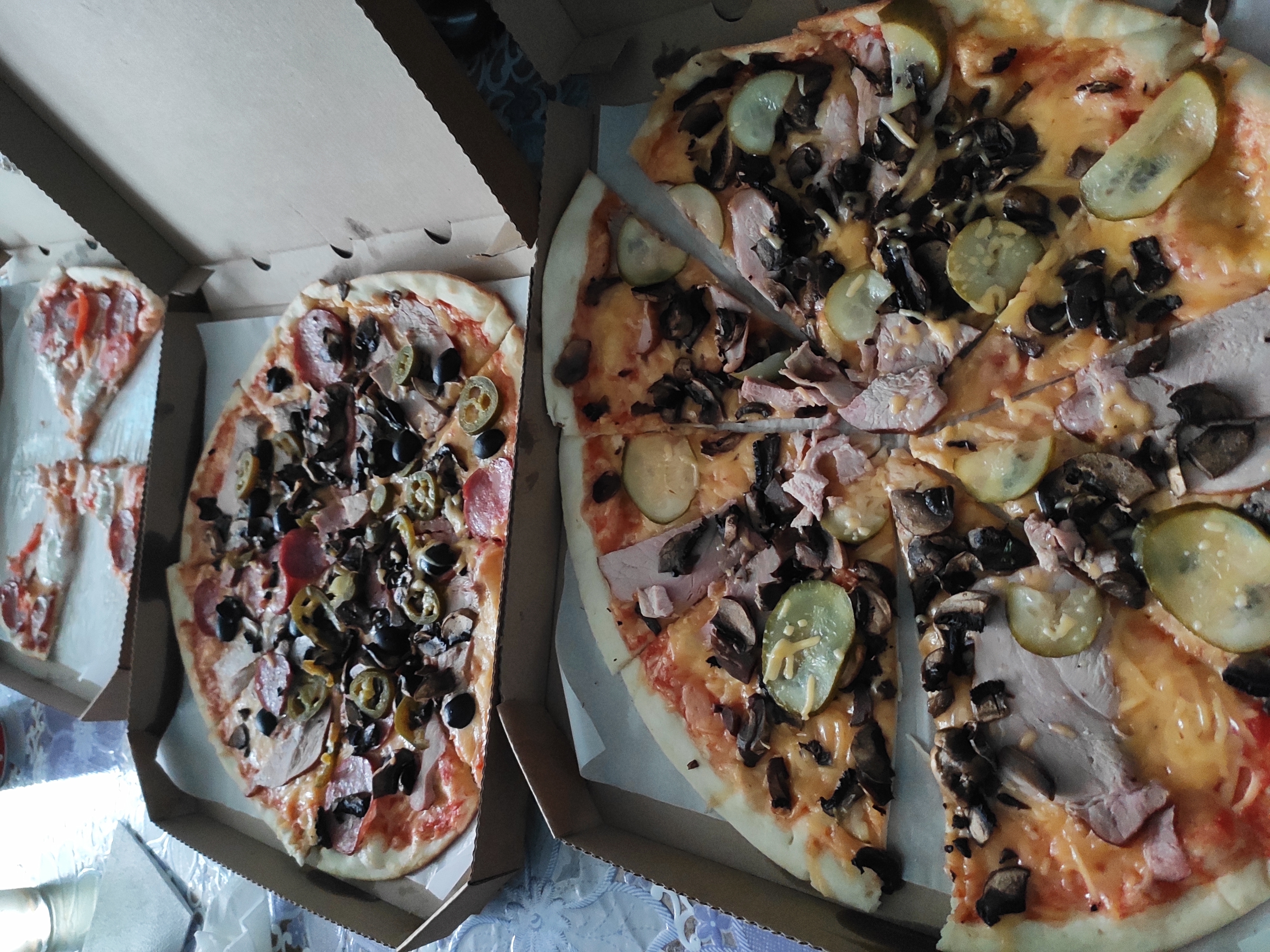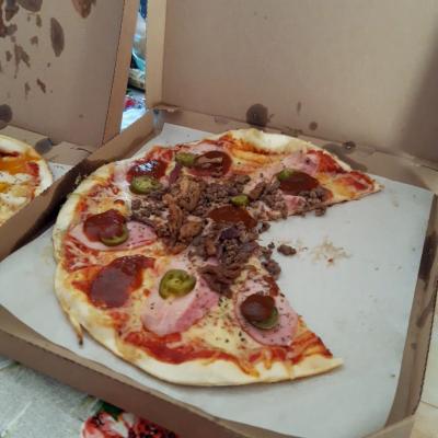 Пицца "Сытная" (460 г) 11,90 р. 17 р. Состав: тесто, соус, сыр, грудинка копченая, колбаса в/к, соус из сметаны и чеснока, помидоры свежие, чесночный соус, орегано ![]()