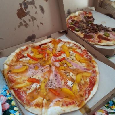 Пицца "Капри" (420 г) 11,90 р. 17 р. Состав: тесто, соус, сыр, ветчина, шампиньоны свежие, огурцы маринованные, чесночный соус, орегано ![]()