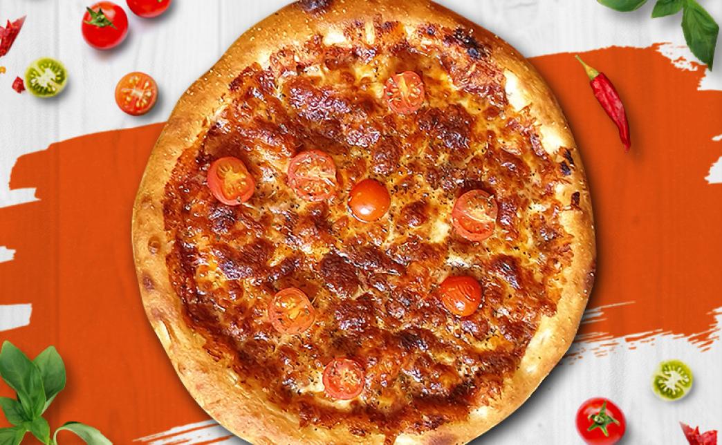 Состав: тесто, томатная паста, моцарелла, черри, орегано