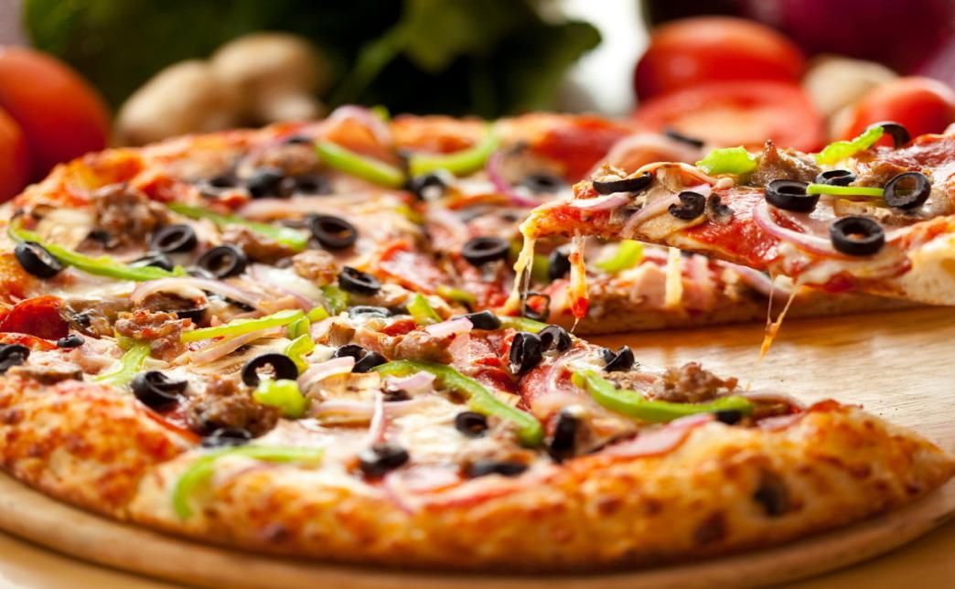 "Вегетариано" Пицца-соус томатный, сыр "Моцарелла", шампиньоны, кетчуп, лук маринованный, чеснок, огурцы свежие, перец свежий, помидоры свежие, маслины. |
