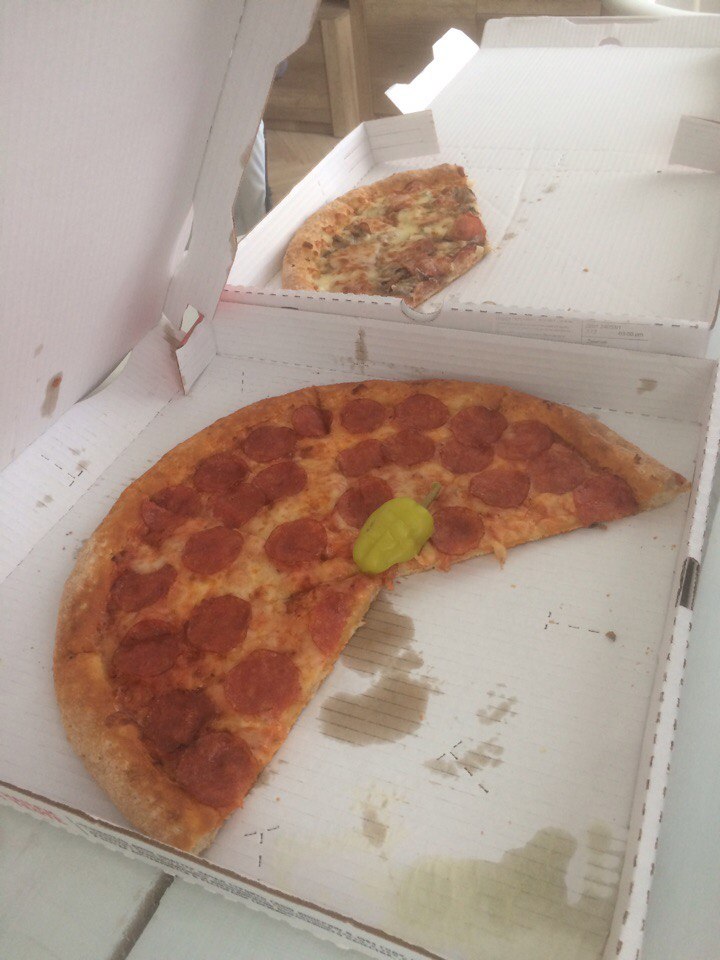 Заказывали пиццу на Я. Коласа, 37. Обслуживала приветливая девушка, дала рекомендации по соусам, напиткам. Заказывали пепперони и ветчина и грибы, первую принесли пепперони - очень вкусная, после нее ветчина и грибы показалась пресноватой, но всё равно всё очень вкусно, тесто тоже, обслуживание понравилось. P.S. только тут в комментариях прочитала про перчик..нам его не приносили :(