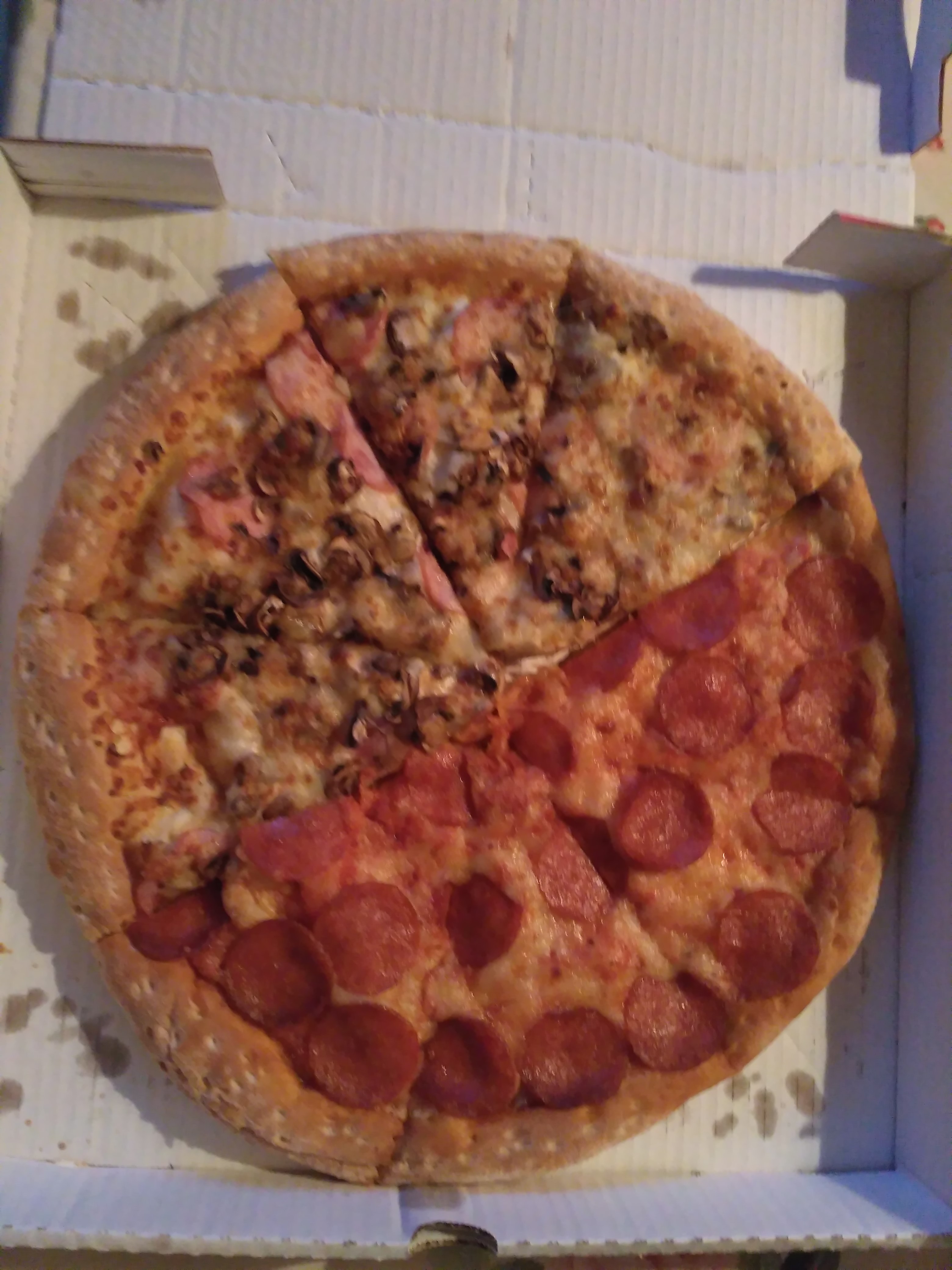 Брали пепперони и ветчина-грибы, код подруги, т.к. она уезжала на отдых и не успевала заказать. Ветчина-грибы вкусная, пепперони не очень для нас показалась, суховата и островата. По акции можно брать. Но за полную стоимость пепперони бы точно не брала.