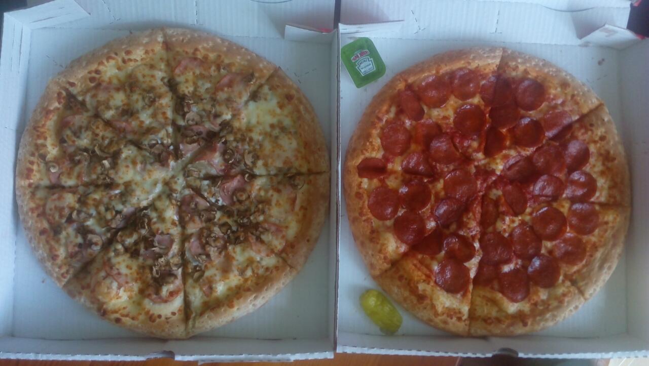 Вкусная пицца,правда отличия тонкого теста от толстого не увидели)а может просто кто-то что-то перепутал))остались довольны